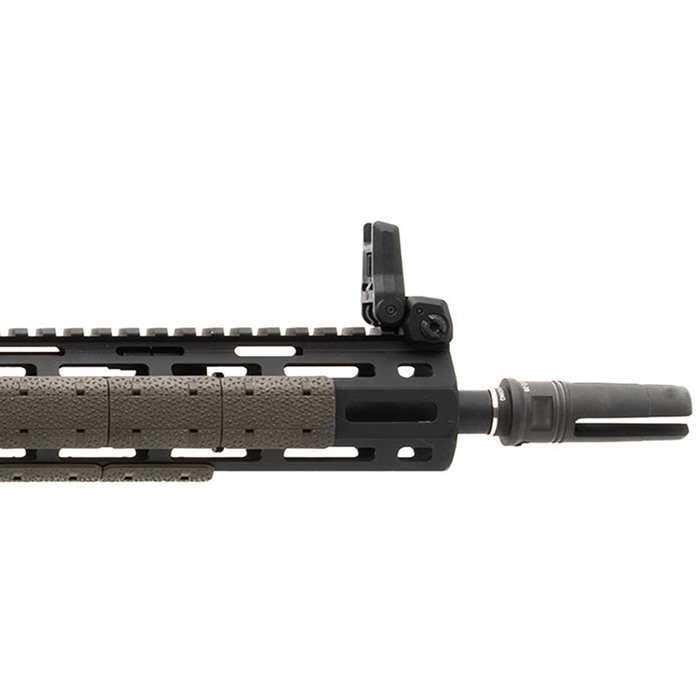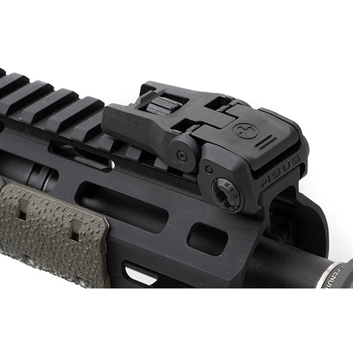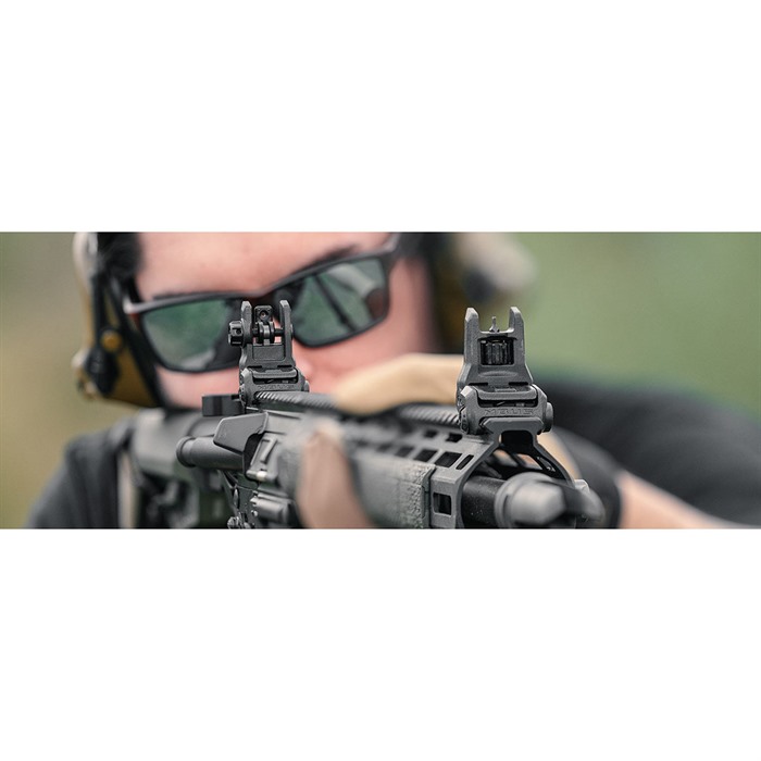 Vaikka sitaatti näyttääkin MBUS Pro:lta, tämä etusite on valmistettu Magpul'n iskunkestävästä polymerista, joka säästää painoa samalla kun se tekee siitä uskomattoman vahvan. Jousikuormitteinen painike avaa Magpul MBUS 3 taitettavan etusiteen tarpeen mukaan, tuoden sen standardin AR-15 -sight-korkeuteen.