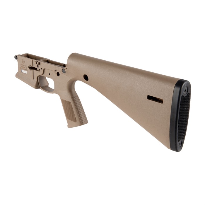What makes this stripped lower different? The answer is simple… the KE Arms KP-15 stripped lower receiver is a monolithic polymer AR-15 style lower receiver made from injection molded, 30% glass-filled nylon. Its unique design incorporates the buffer tube, pistol grip, trigger and a 13-inch (LOP) buttstock into the receiver as integral components. The result is an affordably priced, lightweight lower receiver. The KE Arms KP-15 stripped lower receiver uses a carbine buffer and spring. The take down and pivot pins have built-in detents, which increases durability by eliminating the spring and detent holes. The buffer detent (should you choose to use it) is held in place with a 5/64” roll pin. The hammer pin area is wider for durability; standard AR-15 hammer pins can still be used, though the KE Arms longer hammer pin is recommended for customers preferring a flush pin for aesthetic reasons. The safety selector spring and detent have been designed to load from the top, then the selector is slid over them. (Standard selectors can work but removing them can be particularly difficult. KE Arms recommends the use of their designated mil-spec selector or ambi selector to make removal easier. Follow the manufacturer’s assembly guide for further instructions.) Compatible with all Mil-Spec fire control groups Compatible with cassette style match triggers Flared magwell Available in black and flat dark earth MLOK Slots at rear of stock for sling attachment Pre-drilled in front for QD socket inserts Uses a standard bolt catch. Cannot accept the PDQ lever. The PDQ lever is exclusive to the WWSD complete rifle. Do NOT use anything other than standard carbine buffers and round springs or the JP SCSS in the KP-15. WARNING!: This item is legally classified as a receiver. You Must be 21 years old to purchase this item and a resident of the same state your transferring dealer is licensed in. Stripped Lowers Include Pivot and Take Down Pins KP-15 Selector Detent Buttplate 5/64" Roll Pin to Retain Buffer Detent The KE Arms KP-15 is compatible with standard AR-15 uppers in calibers including .223/5.56mm NATO, .300 Blackout, 6.5mm Grendel and 6.8mm SPC. The lower receiver is also compatible with 9mm blowback systems, when used with a minimum buffer weight of 5.4oz (carbine). Failure to use a minimum buffer weight of 5.4oz can damage the lower. CERAKOTE: If you intend to Cerakote your KP-15 the manufacturer recommends the bake should be done at low temperatures (<190 Degrees F) and with an upper in place to prevent warping. WARRANTY: The KE Arms KP-15 has a lifetime warranty for normal use. If the receiver breaks through misuse or neglect, KE Arms will replace it ONCE for $65.00. NOTE: Not recommended for .458 SOCOM, .50 Beowulf or .50 BMG. Please contact KE Arms if you intend to register your KP-15 lower receiver as an NFA weapon.