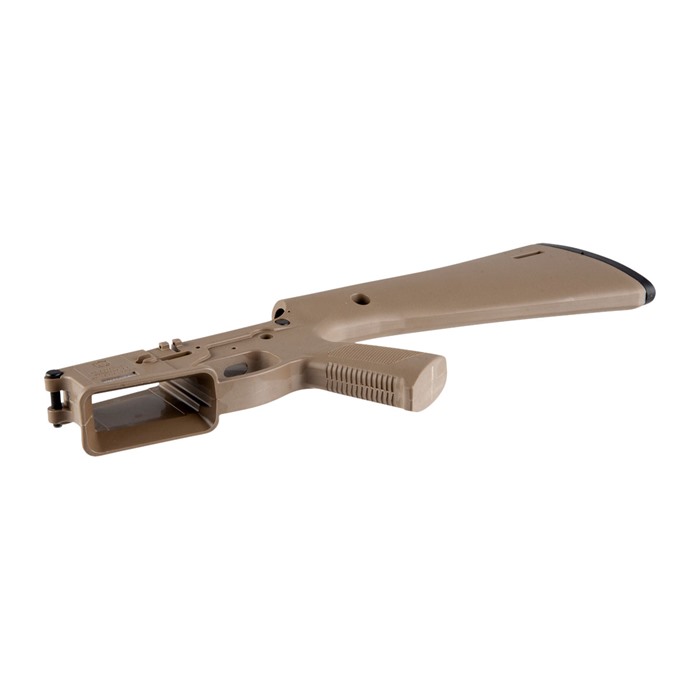 Mitkä asiat tekevät tästä stripped lowerista erilaisen? Vastaus on yksinkertainen… KE Arms KP-15 stripped lower receiver on monoliittinen polymerinen AR-15-tyylinen lower receiver, joka on valmistettu injektoimalla muovista, jossa on 30 % lasikuitua. Sen ainutlaatuinen muotoilu yhdistää bufferiputken, pistoletin kahvan, liipaisimen ja 13-tuumaisen (LOP) perän vastaanottimeen integroituina komponentteina. Tuloksena on edullinen, kevyt lower receiver.