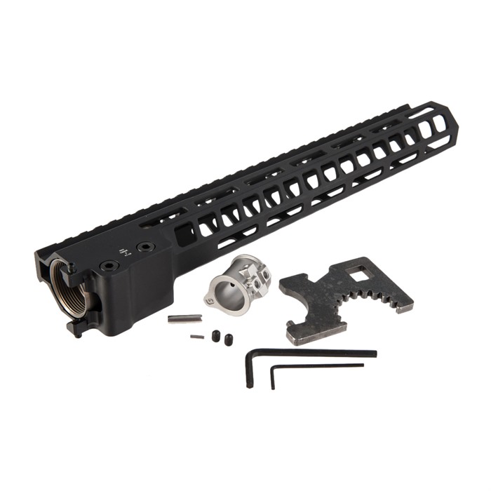 Geissele on myös suunnitellut MK14 Super Modular Rail käsikahvan vapaasti kelluvaksi piipulle käyttäen heidän helppo-asenteista patentoitua piippupulttia. Pultti on 2,25 tuumaa pitkä, joten siinä on runsaasti pinta-alaa käsikahvan tukevaksi ja jäykäksi kiinnittämiseksi. Huomaa, että kaasublokkia ei enää sisällytetä näihin käsikahvoihin.