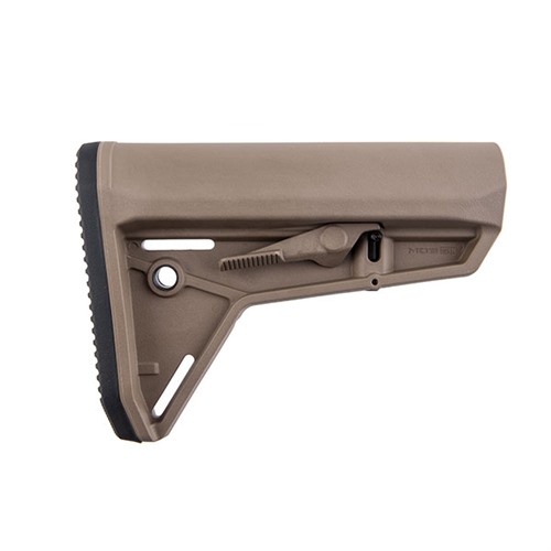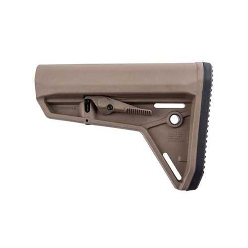 SPECS: Molded polymer, Black, Dark earth, OD Green, and Gray. LOP adjustment range: 3.3" (8.4cm). 7.2" OAL. 9.6 oz. (272.2g) wt. Mil-Spec fits mil-spec 1.14" O.D. carbine buffer tubes.