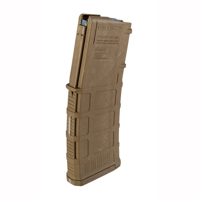 The next-generation PMAG AR/M4 GEN M3 is a 30-round polymer magazine for AR15/M4 compatible weapons chambered in 5.56x45 NATO / .223 Remington. Along with expanded feature set and compatibility, the GEN M3 incorporates new material technology and manufacturing processes for enhanced strength, durability, and reliability that exceed rigorous military performance specifications. While the GEN M3 is optimized for Colt-spec AR15/M4 platforms, modified internal and external geometry also permits operation with a range of additional weapons, such as the HK® 416/MR556A1/M27 IAR, British SA-80, FN® SCAR™ MK 16/16S, and others. Similar to the MOE® PMAG, the GEN M3 features a long-life USGI-spec stainless steel spring for commonality, a four-way anti-tilt follower, constant-curve internal geometry for reliable feeding, and simple tool-less disassembly for easy cleaning. The PMAG GEN M3 also includes a redesigned bolt catch notch in the rear of the magazine that provides increased bolt catch clearance, while an over-travel stop on the spine helps ensure the magazine will not over-insert on compatible weapons. Low profile ribs and new, aggressive front and rear texture give positive control of the GEN M3 in all environments, and a paint pen dot matrix has been added to the bottom panel of the body to allow easy marking for identification. The new, easy to disassemble flared floorplate aids extraction and handling of the magazine while providing improved drop protection, but is slightly slimmer than before for better compatibility with tight double and triple magazine pouches. FEATURES 30 or 40-round reliability with no stoppages Easy Identification - Use the paint pen dot matrix to easily identify your different loads when it's crunch time Advanced follower- The anti-tilt, self-lubricating follower ensures a smooth feed and magazine reliability Slimline floorplate - Improved flared floorplate aids magazine handling and disassembly and is slim enough for use with many double and triple pouches Next-generation impact and crush-resistant polymer construction that includes constant-curve internal geometry for smooth feeding Modified dimensions allow for wider compatibility with non Colt-spec 'STANAG 4179' platforms Constant-curve internal geometry, over-travel insertion stop on the spine, and a long-life stainless steel spring ensure smooth feeding Made in the USA. SPECS Caliber: 5.56x45mm / .223 Remington Platform: AR15, M4, M16, SA-80 Capacity: 30 or 40 Rounds depending on magazine Weight: 5 oz. Length, max: 7.5 in. Compatibility: Wide compatibility with most 'STANAG 4179' platforms such as the AR15, M4, M16, SCAR MK16/16S, HK416, MR556, M27 IAR, IWI Tavor, and others