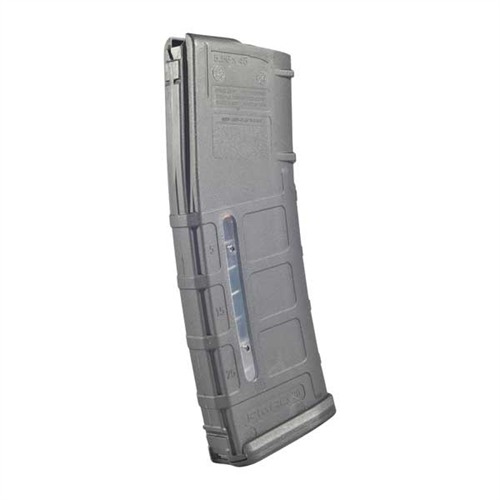 Exceptionally rugged, combat- and competition-ready magazine functions flawlessly, even when left fully loaded for extended periods. Corrosion-proof, self-lubricating one-piece body of fiber-reinforced, molded polymer has no spot welds or joints to impair the follower, and the constant internal curve ensures smooth, unobstructed movement of the round stack. Anti-tilt follower stabilizes the stack to help prevent nose-diving and bolt-over-head failures. Heat-treated, stainless steel spring is stress-relieved for optimal performance. Withstands the heat from prolonged full-auto fire and is not harmed by most bore cleaners and solvents. Exterior ribbing provides added gripping surface; magazine catch notch, rather than a traditional hole, keeps dirt and debris out. Easy-to-grasp ledge on floorplate aids in extracting magazine from pouches; floorplate removes easily for cleaning. Curved-body 30-Round model in MagLevel configuration with windows on both sides of the magazine and a bright, orange indicator to display ammo level. All models available in Black.