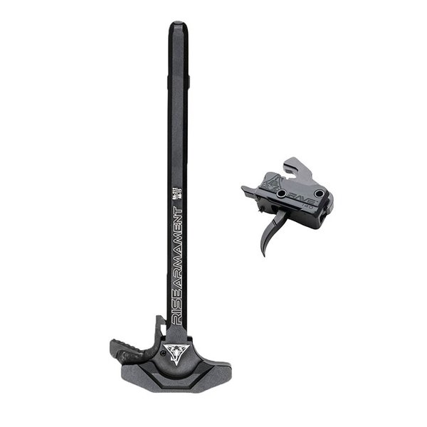 Purchase #430102712 and receive a $15 gift card! RISE’s RA-140 Super Sporting Trigger (SST) for ARs has been a popular choice for many customers and now it’s even better than ever as the Rave 140. Extreme reliability through enhanced engineering. No take-up — just a smooth, crisp break and a short Quik-Klik™ reset you can feel. Elementary installation — no set screws to tighten. Sleek appearance to accompany the enhanced performance. Available with curved or flat trigger blade. Single stage, 3.5-lb. pull weight. The ideal cost-conscious upgrade. Includes free anti-walk pins for worry-free. Installation. Melonite-coated interior parts for enhanced strength and corrosion resistance. Contained in an anodized housing machined from a solid block of 6061 aluminum, which is more. durable and longer lasting than punch-tin housings to help the trigger perform flawlessly under a variety of conditions. Compatible with AR-style platforms with mil-spec dimensions — including .223/5.56, .308, 6.5, and 9mm calibers. Backed by the RISE More-Bang-for-Your-Buck Performance Guarantee and Lifetime Warranty In addition to the trigger this bundle includes the Rise Armament Extended Latch Charging handle. The Rise Armament Charging Handle on the AR-15 is a simple latching design that indexes with the gas key on your bolt carrier group, this allows you to charge your rifle, eject and feed rounds manually. Charging your AR-15 is easier and faster with the extended latch on the Rise premium charging handle.