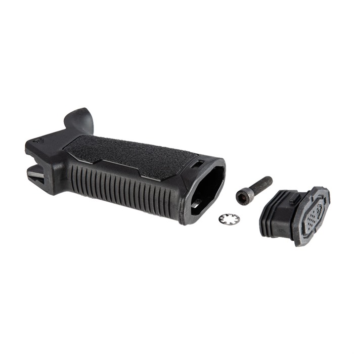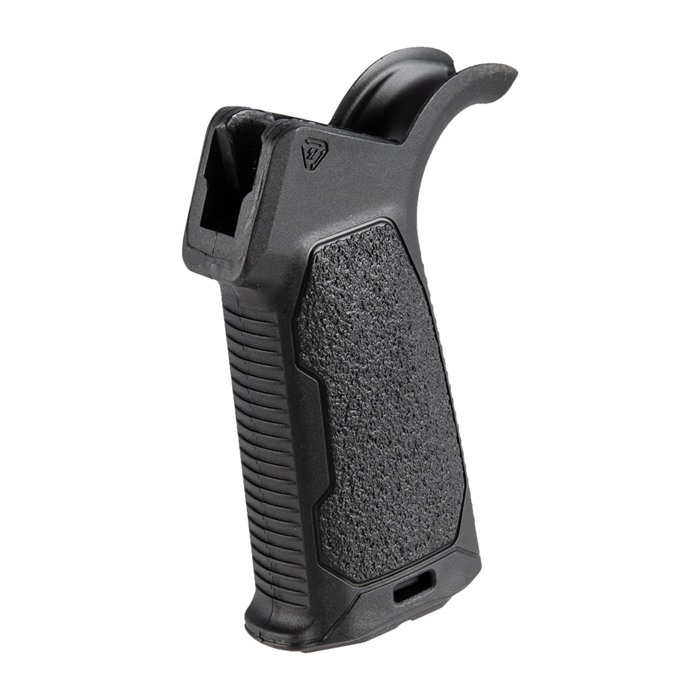 The Strike Industries AR Overmolded Enhanced Pistol Grip comes with a rubberized texture in three (3) different angles to suit any shooter's needs; 15, 20 and 25 degrees. Just like the Strike Industries Enhanced Pistol Grip, but now available with a rubberized overmolded surface which improves control of your weapon. The grip is more streamlined and tapered where the webbing of the hand goes to allow more range of movement of the firing hand when accessing the controls. It has enough width in the palm area to maximize comfort during extended use. Each grip features a comfortable beaver tail and secure storage underneath with an included rubber end cap. Get a solid and cozy hold of your gun now with the Strike Industries AR Overmolded Enhanced Pistol Grip. Rubberized overmolded grip improves control Meets a variety of needs with 3 available angles Secure storage underneath with an included rubber end cap Positive aggressive texture Streamlined profile Non-slip grip Increased Comfort
