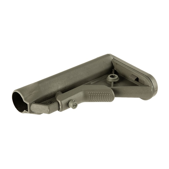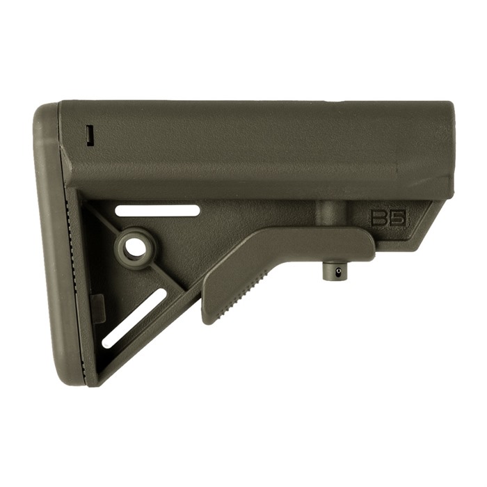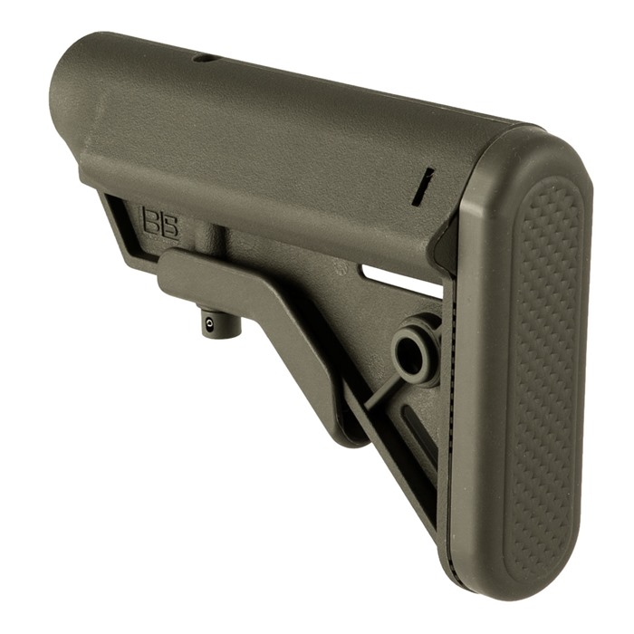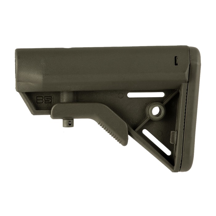 B5 SYSTEMS BRAVO COLLAPSIBLE MIL-SPEC STOCK FOR AR-15 Building upon the success of the B5 Systems Enhanced SOPMOD, B5 has taken the features end users demand; offering them in a lighter, more compact, and stronger buttstock. The Bravo stock maintains the SOPMOD cheek weld, one piece anti-rotation quick disconnect sling mount, non-slip cushioned buttpad, and improved sure grip stock latch. The Bravo omits the storage capability of the SOPMOD to provide a slimmer profile and angles the rear of the stock ensuring quick and consistent stock placement against the shoulder and cheek. Made of Mil-Spec materials and finishes. Currently employed by the U.S. military, this reinforced polymer stock fits M4-type receiver extensions and offers an improved cheekweld designed for increased comfort and consistency. Streamlined contours resist snagging on clothing, equipment, or vegetation to aid in safe and stealthy operation. Sure-Grip stock latch ensures convenient and intuitive length-of-pull adjustment, while the anti-slip rubber recoil pad secures the weapon to the operator’s shoulder. Features a black, stainless steel QD swivel mount and two molded 1¼" wide sling slots. FEATURES Ergonomic Cheek Weld Color-Matched Steel Hardware Fixed Sling Mounts and Steel Anti-Rotational QD Mounts Cushioned Non-slip Buttpad with Built in M4 Multi-Tasker® Tool Holder (tool sold separately) Sure Grip Stock Latch Made of MIL-SPEC Materials and Finishes Fits MIL-SPEC Carbine Receiver Extensions SPECS Weight: 9.3 oz Length: 7.2 in Width: 2 in Height: 4.9 Black and Tan models are TACOM approved and on the Additional Authorization List (AAL) for the M4/M4A1. Black NSN: 1005-01-706-2373 Flat Dark Earth NSN: 1005-01-706-2510
