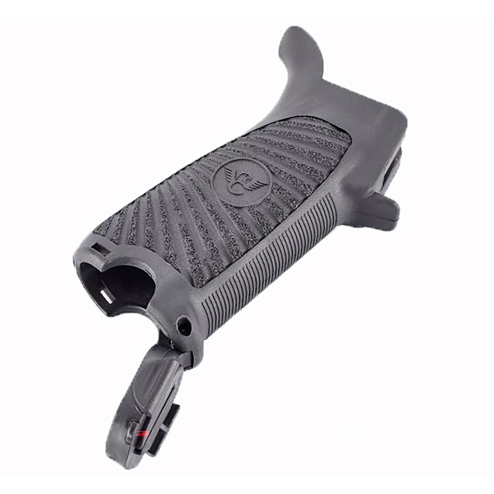 The Wilson Combat-Bravo Company Starburst Gunfighter Grip is one of the more comfortable and ergonomic grips available for the AR-15. Easy installed with a large flat head screwdriver, this high quality grip has become one of the leaders in the AR-15 market in a very short time. This nearly unbreakable polymer construction has a comfortable, natural grip angle for dynamic shooting and molded Wilson Combat exclusive Starburst design pattern for a sure grip. A water-resistant storage area is perfect for keeping lube or batteries. Reduced angle for improved ergonomics. Hinged trap door offering storage inside the grip with a water-resistant rubber gasket. Made in the USA and manufactured from high quality impact resistant polymers. Mod-3 has rear tang filler for a larger grip to fit gloved and non-gloved users. Exclusive Wilson Combat Starburst pattern for a signature look and improved traction. Note: The tab on the front of the grip must be removed for use with the Wilson Combat® Tactical Trigger Guard (TTG)