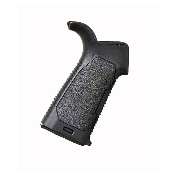 The Strike Industries Enhanced Pistol Grip lineup comes in three different angles to suit any shooter’s needs. Now available with an improved grip texture for more positive handling of the rifle. The grip is more streamlined and tapered where the webbing of the hand goes to allow more range of movement of the firing hand when accessing the controls. It has enough width in the palm area to maximize comfort during extended use. Each grip features a comfortable beaver tail and secure storage underneath with an included rubber endcap. The 25-degree grip has an aggressive angle similar to the traditional A2 grip. It’s meant for the traditional rifleman grip where the shooter would stand bladed and the shooting elbow is canted outwards. Compatible with AR-15 and AR-10 receiver styles.