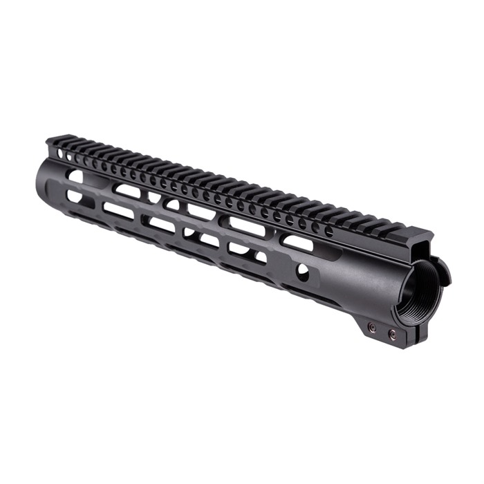 Brownells has released their newest additions in the Wrenchman Line of Handguards! Introducing the Brownells Wrenchman LW Hanguard! The Wrenchman LW is a lightweight handguard featuring three sides of M-LOK slots. It also features a 1913 Picatinny Top Rail for optimal accessory attachments. These handguards come with a Midwest Industries patented Torque Plate for solid attachment to the barrel nut. 4140 Heat Treated Barrel Nut Features Patented 4140 Heat Treated Torque Plate Available in 10.5”, 12.625”, 14” length rails 6061 Aluminum Type 3 Hard Coat Anodized MIL-STD 1913 Picatinny Top rail Two Integral Anti-Rotation QD Sling Sockets Super Slim 1.5” Outside and 1.3” Inside Diameter Weights: 10.5"- 9 oz installed, 12.625"- 10.3 oz installed, and 14"- 11 oz installed Three Sides of M-LOK Fully Dehorned and Deburred Made in the USA
