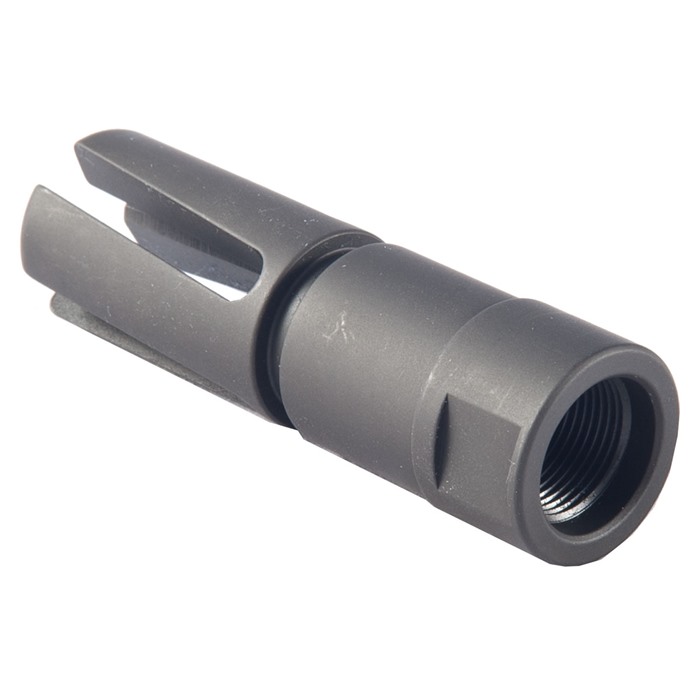 Streamlined unit reduces muzzle flash with four, 15° helical flutes. Provides Vortex technology for Remington 700 Tactical, Savage, and AR-style .308 rifles. Grooved to accept a Smith Enterprise Direct Connect sound suppressor. Comes with 5⁄8"-24 thread pitch and .635" thread length to fit Savage 110 FCP bolt action and AR-style .308 rifles with the shorter thread spec, including DPMS and Noveske. Also fits 6.8mm SPC rifles with these muzzle thread specs.