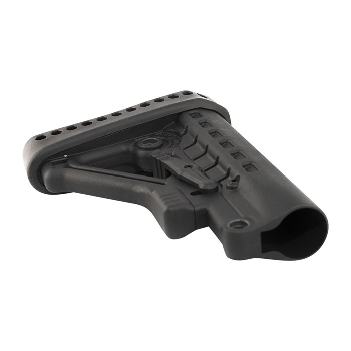The Archangel® 6-position, M4-style adjustable buttstock that can be installed on all commercial-series buffer tubes. Featuring ambidextrous QD sling-swivel inserts at the front and rear of the buttstock, plus a slot for attaching a web-sling, the Archangel® adjustable butt-stock allows multiple configurations for the convenience of the user. Constructed of legendary high strength, carbon fiber and glass reinforced black polymer, with slip on recoil rubber recoil pad. Lifetime Warranty. Made in USA. Buttstock for the AR-15® / AR-10® 6 position M4 style adjustable buttstock Can be installed on all commercial series buffer tubes Ambidextrous QD sling swivel inserts at the front and rear of the buttstock A slot for attaching a web sling Allows multiple configurations for the convenience of the user Constructed of legendary high strength, carbon fiber and glass reinforced black polymer Includes a slip on rubber recoil pad Lifetime Warranty* Made in USA