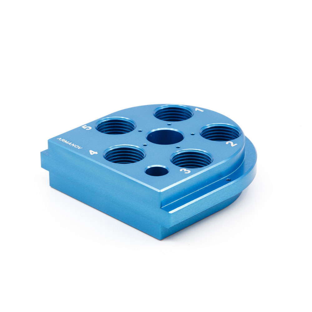 0712195456677 Mitkä ovat Free-Float, Zero-Play Toolheadin edut? Tässä työpäässä on lukitusrenkaat, jotka mahdollistavat sizer- ja seater-dieiden kelluvan. Tämä kelluva toiminta mahdollistaa dieiden keskittämisen tarkasti jokaisen patruunan ylle parhaan mahdollisen kohdistuksen ja tarkemman ammuksen saavuttamiseksi. Mitkä ovat Zero Play -ominaisuudet? Tämä työpää ei käytä alkuperäisiä työpääpultteja, joita Dillon toimittaa. Tämä työpää on kiinnitetty kahdella M3-pultilla ja nostaa työpään ylös. Kun syötät patruunoita alaspäin, työpää ei liiku ja patruunat kulkevat suoraan linjaa pitkin. Paras käytäntö on löysätä M3-pultteja hieman ja työntää indeksikotelopohjaa yhdessä patruunan kanssa dieihin ja kiristää M3-pultit työpään parhaaseen asentoon. Mitä on keskeisyys ja miksi se on tärkeää? Keskeisyys viittaa siihen, kuinka suora kuula on ladatun patruunan päällä. Suora kuula menee riflingiin piipussa oikein. Kuulat, jotka menevät riflingiin hieman vinosti, eivät ammu parhaalla tarkkuudellaan. Mitkä ovat OEM-työpään käytön ongelmat? Dillon-puristimet ovat erinomaisia koneita, jotka on valmistettu korkealaatuisista standardeista. Kuitenkin valettu työpää sisältää rajoituksia. Mistä tiedämme, onko työpään reuna suora? Tai miten tiedämme, että jokainen kierreasema työpäässä on täydellisessä kohdistuksessa kotelopohjan kanssa? Miten tiedämme, että asemat ovat yhtä kaukana toisistaan? Kaikki nämä alueet voivat aiheuttaa mahdollisia väärinkohdistuksia ja johtaa ammuksiin, jotka eivät ole yhtä keskeisiä kuin voisivat olla. Työpää on viimeinen linkki dieiden ja puristimen välillä, joten on vain järkevää, että laatu on äärimmäisen tärkeää. Yli 100,000 EUR arvoisten dieiden, jauhemitan ja muiden lisävarusteiden ollessa kiinnitettyinä työpäähän, etkö haluaisi tietää, että se on paras saatavilla! Mikä on erilaista uudessa CNC-koneistetussa työpäässä? Nämä työpää ovat valmistettu korkeimpien standardien mukaan. Ne on CNC-koneistettu 6082-alumiinista, joka on paljon vahvempaa ja vähemmän joustavaa kuin valettu työpää. Kaikki kriittiset mitat koneistetaan yhdessä operaatiossa, varmistaen, että kaikki pinnat ovat suoria ja kohdistettu toisiinsa nähden. Die-reiät on sijoitettu erittäin tarkasti ja 7/8-14 kierteet on koneistettu tiukoille toleransseille tarkan istuvuuden ja kohdistuksen saavuttamiseksi, mikä tuottaa dieitä, jotka ovat tarkemmin keskitettyjä kuhunkin reikään ja paremmin kohdistettuja patruunankoteloihin kotelopohjassa. Myös reuna on tasaisempi kuin valettuna saavutettavissa. Valmistettu EuroopassaSisältää M3-pultit ja kuusiokoloavaimenValmis Free-float-renkailleToimitusaika noin 5-7 päivää.