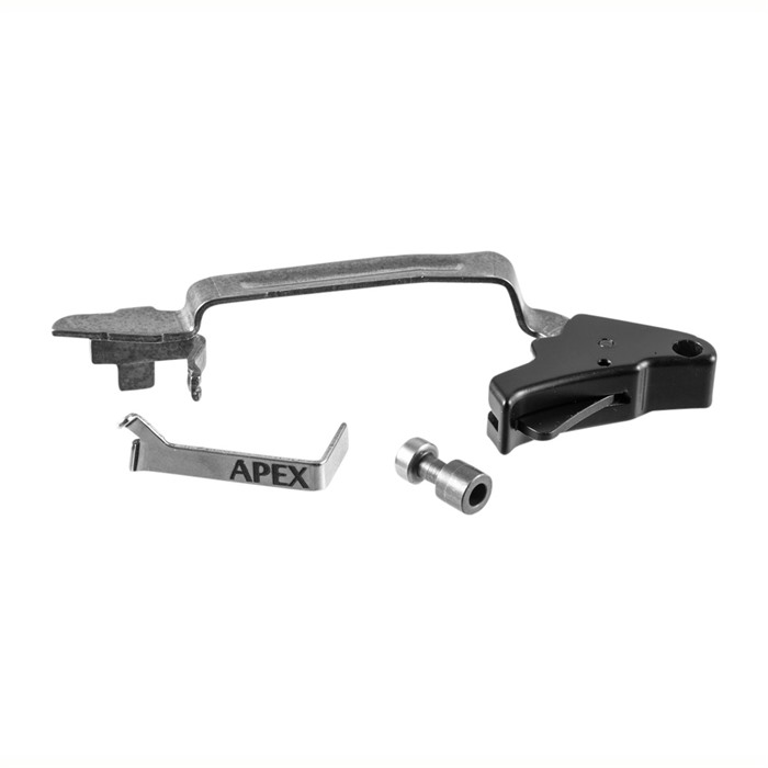 Apex Action Enhancement Kit Glock-pistooleille tarjoaa Glock-pistoolin omistajille mahdollisuuden parantaa useita ominaisuuksia Glockin liipaisimen vedossa. Tämä kit korvasi suoraan Glockin tehtaan muoviliipaisimen, ja uusi muotoilu parantaa liipaisimen kokonaismatkaa, tekee vedosta sujuvamman, tarjoaa puhtaan liipaisun katkaisun ja tuottaa paremman palautteen.
