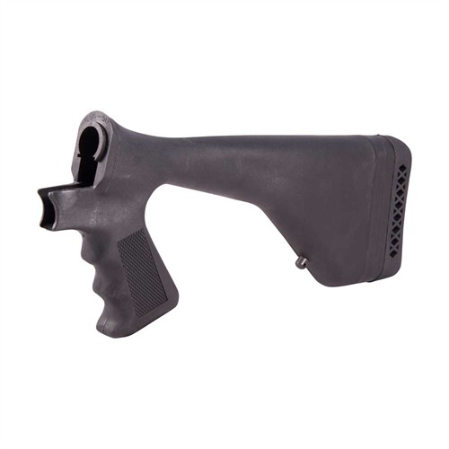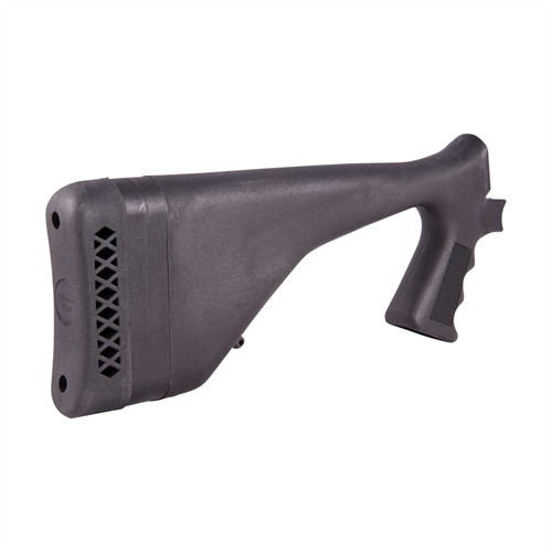 Fiberglass-filled, plastic stocks stand up to the roughest handling your Remington 870/1100 and Mossberg 500/600 can take, without denting or chipping. Two, half-inch thick spacers that let you choose from a 13", 13½", or 14" length of pull. Pistol grip provides a natural hold. Features a swivel stud and a hard rubber, vented, recoil pad. Available for 12 gauge only.Fiberglass Pistol-Grip Forends available separately.