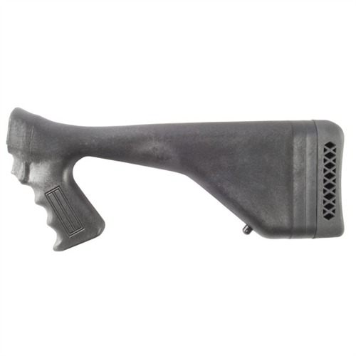 Fiberglass-filled, plastic stocks stand up to the roughest handling your Remington 870/1100 and Mossberg 500/600 can take, without denting or chipping. Two, half-inch thick spacers that let you choose from a 13", 13½", or 14" length of pull. Pistol grip provides a natural hold. Features a swivel stud and a hard rubber, vented, recoil pad. Available for 12 gauge only.Fiberglass Pistol-Grip Forends available separately.