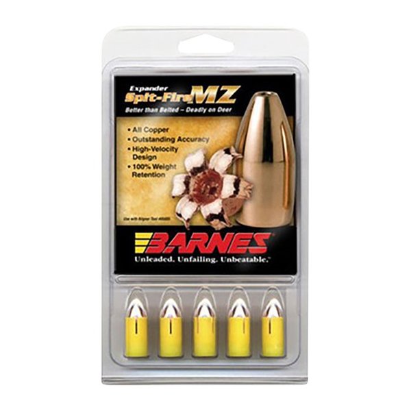BARNES SPIT-FIRE MZ -kuulat ovat saatavilla .50 kaliberissa, 250- ja 290-grainin painoina. Nämä kuulat säilyttävät lähes 100 prosenttia alkuperäisestä painostaan, mikä tekee niistä äärimmäisen luotettavia ja tehokkaita kaikissa metsästystilanteissa.