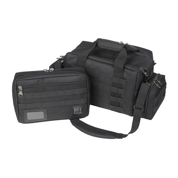 Bulldog® BDT Tactical MOLLE Range Bag (Extra Large) Heavy-Duty Zippers & Zipper Pulls Large Main Compartment Includes Removable Storage / Ammo Container w/ Handle 4 Large Removable Exterior Molle Padded Accessory Pouches Deluxe Padded Adjustable Shoulder Strap 9” H x 22” W x 18” D"