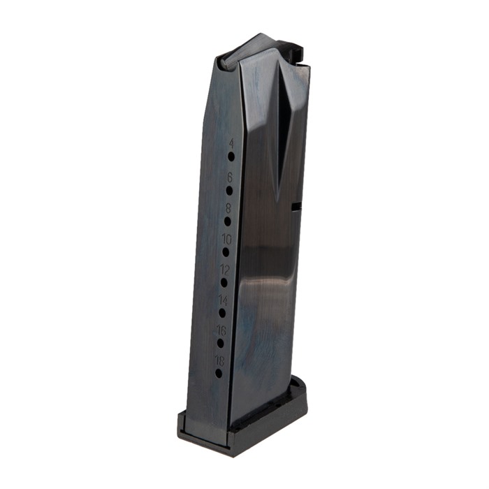 Brownells went straight to the source for quality pistol magazines, Meccanica del Sarca of Italy. Meccanica del Sarca has been producing OEM magazines for major firearms manufacturers since the late 1980s. Now, these quality magazines are available direct to you. Meccanica del Sarca stamps, welds and finishes the magazines in-house, and has strict quality controls for its heat treatment and surface finishing suppliers. These magazines feature a dark blued finish, that makes magazines changes smooth and fast. Polymer follower smoothly operates within the blued magazine body. Witness holes a the rear provide a quick assessment of remaining cartridges.