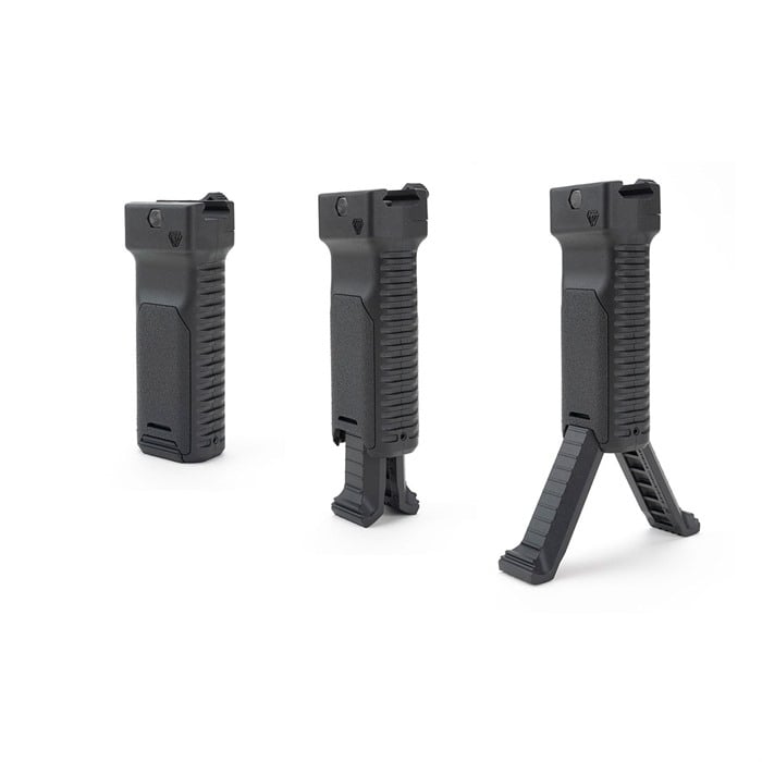 Valmistettu kestävästä ja kevyestä polymeeristä, Strike Bipod Grip yhdistää kaksi hyödyllistä työkalua, säästäen raiderakennetta ilman merkittävää painon lisäystä edulliseen hintaan.
