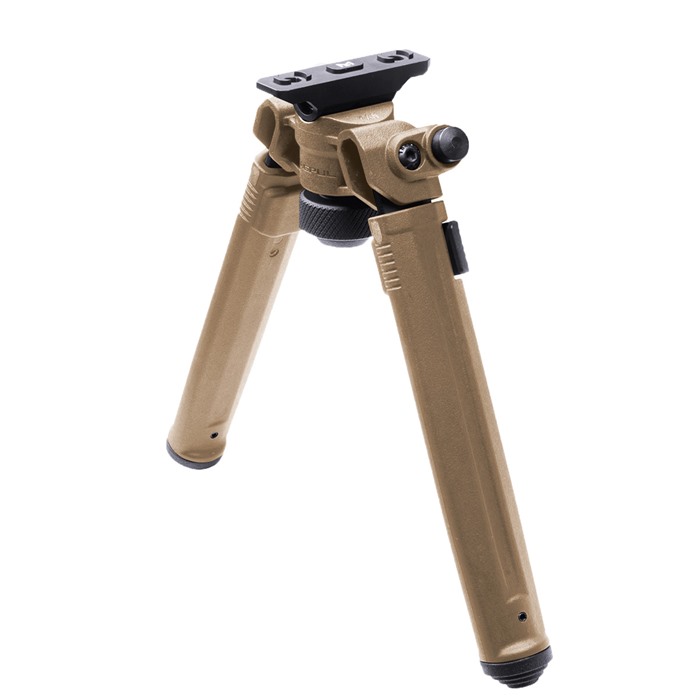 The Magpul Bipod for M-LOK offers serious strength and versatility at a price that provides unmatched value. Magpul’s lightweight Mil-Spec hard anodized 6061 T-6 aluminum and injection-molded polymer bipod brings innovation in ergonomics, functionality, strength and value together. Its low-profile design conceals its internal mechanisms and hardware, smoothly brushing off snags and bumps. Optimized for rapid one-handed adjustments, the bipod quickly and quietly transitions between user configurations. In the shooting position, it is easily loaded with stabilizing forward tension without fear of failure or warping. Its aluminum and stainless steel components, along with its injection-molded reinforced polymer, ensure years of dependable performance and reliability, all while shaving weight. It's extremely light weight, at just over 11 oz. Leg extensions slide and lock securely with the push of a button on any of the seven half-inch spaced locking detents. The legs extend 3.5 inches, from 6.8” to 10.3”. An industry-exclusive 50° of total tilt and 40° of total pan are controlled by a glove-friendly knurled tool-less bipod locking knob located between the extended legs. It also has the exclusive ability to lock pan at 0° while maintaining full tilt functionality. Folded, the streamlined housing and legs fit neatly under the barrel and are just under 2.3” deep and 3.3” wide. Anodized surfaces and tight, precision tolerances mitigate squeaks and rattles. A soft rubber bipod locking knob cap is attached to the locking knob gives users a steady, non-marring forward rest while the bipod is folded. Additionally, its staggered soft rubber feet hold fast on a variety of shooting surfaces and are easily removed with a roll pin punch. Should users choose to change feet, the Magpul Bipod’s legs accept most Atlas pattern bipod replaceable feet, except for the Atlas 5-H style. Made in the U.S.A. FEATURES Designed for streamlined storage until deployment Folded, the sleek housing and legs fit neatly under the barrel and are just under 2.3” deep and 3.3” wide Leg extensions slide and lock securely with the push of a button and a tool-less knurled bipod locking knob allows easy adjustment between shots Legs extend from 6.8” to 10.3” with seven locking detents Spring-tensioned legs stow forward when not in use, and then quickly snap down and lock into place with one hand Legs accept most Atlas pattern bipod replaceable feet to best match the needs of your environment SPECS More Information Attachment: M-LOK Slots Materials: Steel, Mil-Spec hard anodized 6061 T-6 aluminum, polymer Height, max: 10.3"" Pan and Tilt: 50° tilt and 40° pan Weight: 11 oz.