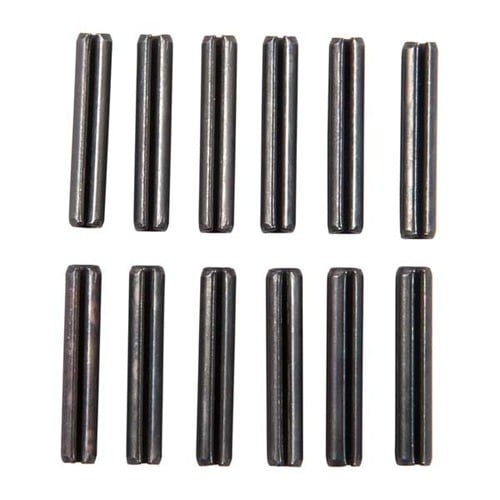 Roll-pinnien käyttö aseissa on lisääntynyt, ja olemme etsineet hyvää valikoimaa mustasta teräksestä valmistettuja pinnejä tarjottavaksi. Löysimme sen vihdoin - 850 pinniä, joissa on 8 eri halkaisijaa ja erilaisia pituuksia (katso alla). Tämä kokoelma kattaa useimmat aseiden tarpeet! Erinomainen myös muihin työpajan tehtäviin. Voit tehdä jiggejä, kiinnikkeitä tai käyttää niitä korvaamaan kartiopinnat, tapit, urapinnat, säätöruuvit jne. Ne eivät luista tai tärise ulos. Helppo käyttää, sillä ne eivät vaadi kierteittämistä tai teippaamista. Voidaan leikata mihin tahansa pituuteen; voidaan mustata tai pinnoittaa. Käytä Roll Pin Punches -työkaluja positiiviseen ja turvalliseen poistamiseen.