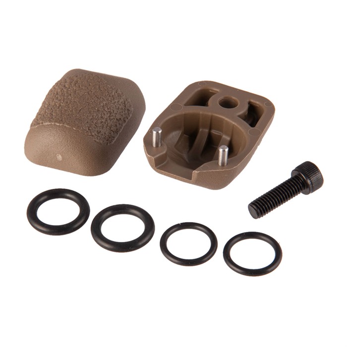 Bolt Lift SV (Small Version) consists of two reinforced polymer knob halves and some supporting parts. Users can choose between a permanent installation using epoxy, a rock solid removable setup, or a quick simple install using the supplied spacers to tailor the fit of the Bolt Lift to the factory bolt handle. A stainless steel screw to clamp the knob halves together and some reinforcing pins round out the package. KRG has selected a very strong , reinforced polymer material and incorporated it into a thick-walled, high strength design to ensure that your Bolt Lift will be the last part on your rifle to fail. As an added benefit, the polymer construction will isolate your hand from environmental effects.