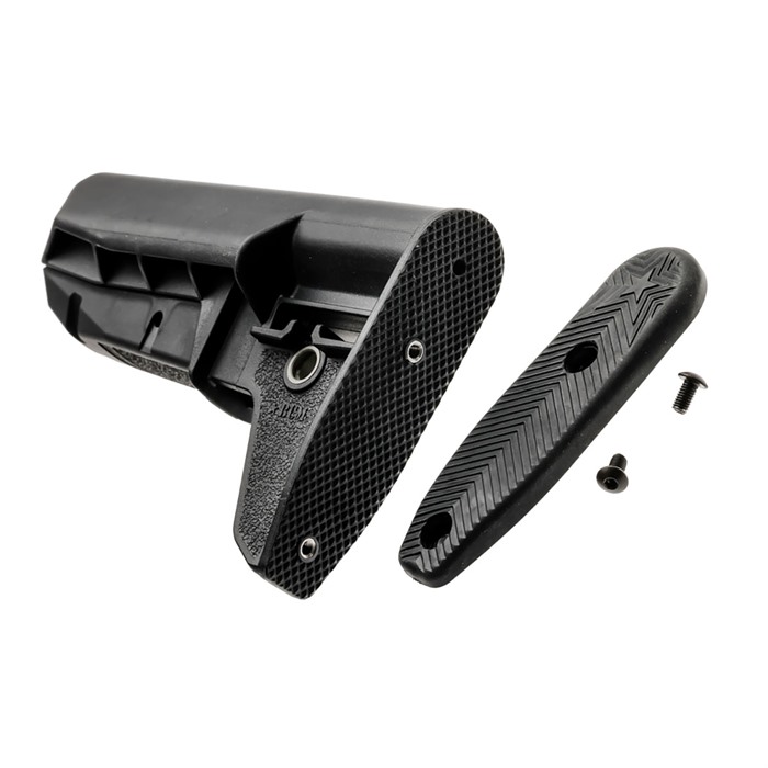BCM Stock Kit w/ Mod 2 stock and MK2 RMS INCLUDES: BCM Stock Mod 2 - Black BCM MK2 Receiver Extension (approximately 3/4” longer than carbine), 7076T6, 8 position, Mil-Spec diameter Mil-Spec M16A4 Rifle Action Spring BCM MK2 Mod 1 - T0 Buffer (weight = approximately 3.8oz) BCM EPM4 End Plate (include mount for QD swivel) Locking Nut (Castle Nut) M4 FIT LIKE A GLOVE, BUILT LIKE A TANK Made by Americans in Hartland, WI – the BCM® Mod 2 stock is an improvement over the baseline M4 accessory with enhanced ergonomics, and next-level durability. Recontoured into a patented (United States Patent Number: D901616) semi-clubfoot design, the Mod 2 is fits on Mil-Spec carbine receiver extensions, and optimized for intermediate length receiver extensions (MK2, AR10, A5). These improved lines also enhance shooting in the prone position while remaining snag free, with no edges to catch or tangle in slings, antenna, or other PPE. A SCION OF CONFLICT DELIVERING UNSURPASSED PERFORMANCE Retaining the patented* internal latch system and the ambidextrous rotation limited QD interface, the BCM Mod 2 Stock features an end user removable buttpad, an improved VBOST (Vehicle Borne Operations Sling Tab) sling retention point, “plus two additional web sling attachments slots. United States Patent Number: 9,109,855 ADAPT TO YOUR MISSION MODULAR BUTTPAD Selecting between a rubberized pad, traditional in light infantry operations; or solid diamond textured non-slip surface, optimized for high-ready weapons manipulation, the removable Modular Buttpad is capable of enabling both techniques. VBOST The VBOST is an interface that provides multiple positions for retention bands when the weapon system is run with the sling “S-folded” against the stock. Typically configured in this manner for vehicle operations or concealed “low vis” movement, the VBOST creates options for the end user that can be vital in critical life saving situations. MADE IN AMERICA All BCM components and accessories unite state of the art manufacturing with lightweight and durable materials to ensure components that last a lifetime, performing far beyond standards established nearly six decades ago. Like all BCM rifles and accessories, the BCM Mod 2 Stock is designed and made in the USA. Offered in two configurations: Stock only or stock kit with Mk2 RMS hardware.