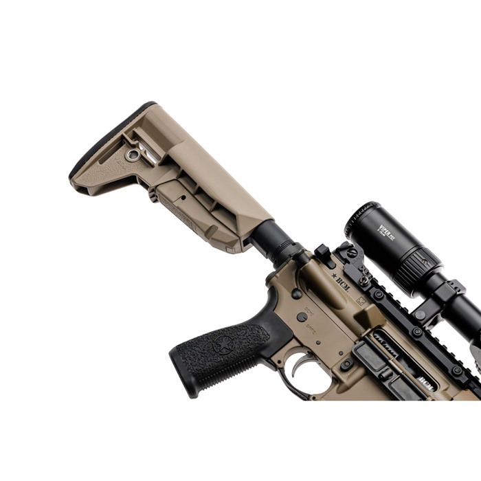 BCM® Mod 2 -tukki on parannus perus M4-lisävarusteeseen verrattuna, tarjoten parannettua ergonomiaa ja huipputason kestävyyttä. Sen patentoidun (Yhdysvaltain patenttinumero: D901616) puoliklubijalkamuotoilu istuu Mil-Spec karbiinivastaanottopäihin ja on optimoitu välikokoisille vastaanottopäille (MK2, AR10, A5). Nämä parannetut muodot helpottavat myös ampumista makuuasennossa, pysyen samalla esteettöminä ilman teräviä reunoja, jotka voisivat tarttua tai takertua köysiin, antenneihin tai muuhun henkilökohtaiseen suojavarustukseen.