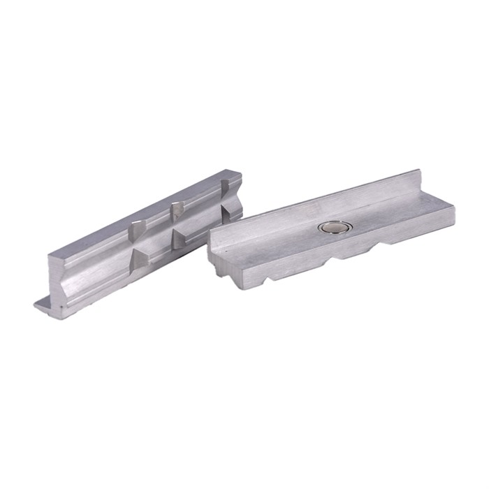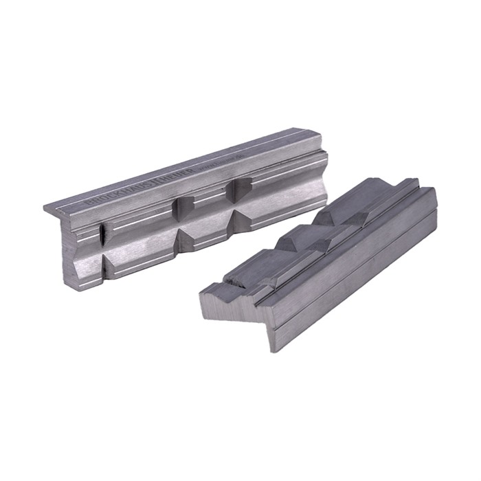 050806000964 Erityiset leuat auttavat sinua saamaan kaiken irti Brownellsin työpöydästä. Visiin lisättävät leuat liukuvat Brownellsin Gunsmithin työpöydän vitsiin kiinnitettyjen tehtaalle asennettujen leuoiden päälle, ja niiden avulla voit räätälöidä vitsisi erityisiä projekteja ja työpalikoita varten. Ne on päällystetty erilaisilla materiaaleilla, jotka auttavat pitämään osat tukevasti paikoillaan samalla, kun vaurioitumisen tai naarmuuntumisen riski minimoidaan. Lisäosat on valmistettu kevyestä mutta kestävästä alumiinista, ja ne pidetään paikallaan visissä voimakkailla harvinaisilla maamagneeteilla. Alumiinimateriaali estää magneetteja magnetoimasta teräksisiä osia, joita pidetään leuoissa. Prismapehmeät leuat - Polyuretaanista valmistetut prismaleuat on suunniteltu tukevasti kiinnittämään herkkiä pyöreitä ja soikeita työpalikoita ilman vaurioitumisen riskiä. Polyuretaanissa olevat erilaiset kokoiset "prism"-muotoiset aukot auttavat asettamaan työpalikat tukevasti paikoilleen. Pehmeä polyuretaanipinta on äärimmäisen joustava, mutta kestävä muodonmuutoksille tai pysyvälle "asetukselle". Kun paine poistetaan, ne palaavat alkuperäiseen muotoonsa. Tämä materiaali ei myöskään kovetu iän myötä. Ruudulliset pehmeät leuat - Nämä polyuretaaniset leuat sisältävät ainutlaatuisen "ruudullisen" kuvion tartuntapinnoilla, jotta ne pitävät herkkiä pieniä osia vaurioitumatta. Pehmeä polyuretaanipinta on äärimmäisen joustava, mutta kestävä muodonmuutoksille tai pysyvälle "asetukselle". Tämä materiaali ei myöskään kovetu iän myötä. Prismialumiinileuat - Nämä lisäosat ovat kovuudeltaan kuparin ja lyijyn välissä ja on suunniteltu tukevasti kiinnittämään pyöreitä/soikeita esineitä Brownellsin työpöydässä. Yksi vaakasuora prismamuotoinen aukko ja kolme erikokoista pystysuoraa prismamuotoista aukkoa on suunniteltu pyöreiden tai soikeiden työpalikoiden tukevaksi kiinnittämiseksi. 90° aukko leuoissa on suunniteltu vaakasuoralle kiinnittämiselle tasaiselle materiaalille. Uralliset alumiinileuat - Auttaa sinua kiinnittämään sylinterimäisiä työpalikoita Brownellsin visissä. Kuusi vaakasuoraa uria pitävät työpalikat tukevasti paikoillaan, kun taas syvempi keskiura kiinnittää pultit, tangot, nastat ja muut sylinterimäiset osat tukevasti, kun työskentelet niiden parissa. Kovuus on kuparin ja lyijyn välissä, joten nämä leuat ovat luonnollisesti paljon pehmeämpiä kuin mikään teräksinen esine, jota ne tarttuvat, joten et vahingoita työpalikkaa. Kuituleuat - Näiden leuoiden tiheä kuitumateriaali pitää tukevasti hienosti koneistettuja tai kiillotettuja osia. Kuitu ei vahingoita kiillotettua pintaa. Tiheät kuitukerrokset ovat lämpöä kestäviä eivätkä muutu muotoa lämmitettäessä. Kumileuat - Suunniteltu erityisesti erittäin herkille puu- ja muoviosille sekä ohuille putkille, nämä leuat ovat pehmeällä, synteettisellä kumipinnalla, joka pitää herkkiä työpalikoita, jotka kestävät vain erittäin kevyttä puristusvoimaa. Kumimateriaali on vahvistettu kolmella kerroksella kangasta, mikä vastustaa kumin joustavuuden taipumuksia ja tarjoaa riittävästi jäykkyyttä pitää osan tukevasti paikoillaan. Huopaleuat - Nämä leualisäosat sisältävät huopapinnan, joka on suunniteltu erittäin herkkiä työpalikoita varten. Erityinen kulutuskestävä huopamateriaali mukautuu tiiviisti työpalikan muotoihin, joten minimaalista puristusvoimaa tarvitaan osan pitämiseen paikoillaan. Jopa herkimmät työpalikat voidaan kiinnittää vahingoittamatta niitä. Korvaavat tehdas teräksiset leuat - Nämä ovat samoja teräksisiä leuoja, jotka asennettiin Brownellsin Gunsmithin työpöydälle, kun se oli uusi. Ajan myötä alkuperäiset leuat saattavat kulua tai vahingoittua. Ne voidaan helposti vaihtaa poistamalla vain kaksi pulttia, jotka kiinnittävät jokaisen leuan, ja korvaamalla ne näillä. Pultit asetetaan leuan rungon ulkopuolelta, mikä tekee niiden asentamisesta helpompaa ja vähemmän todennäköistä vaurioitua. Kuten alkuperäiset, nämä leuat sisältävät sekä sileän pinnan että "ruudullisen" tekstuuripinnan. Käytä puolta, joka toimii parhaiten käsillä olevaan projektiin.Toimitusaika noin 5-7 päivää.