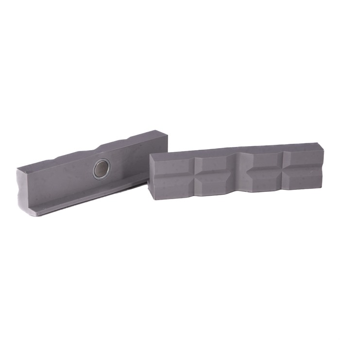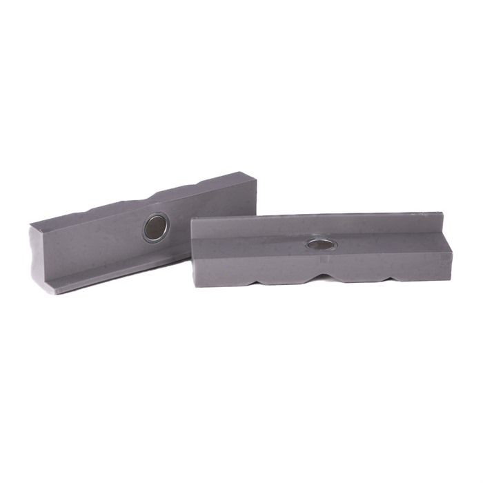 050806000940 Erityiset leuat auttavat sinua saamaan kaiken irti Brownellsin työpöydästä. Visiin lisättävät leuat liukuvat Brownellsin Gunsmithin työpöydän vitsiin kiinnitettyjen tehtaalle asennettujen leuoiden päälle, ja niiden avulla voit räätälöidä vitsisi erityisiä projekteja ja työpalikoita varten. Ne on päällystetty erilaisilla materiaaleilla, jotka auttavat pitämään osat tukevasti paikoillaan samalla, kun vaurioitumisen tai naarmuuntumisen riski minimoidaan. Lisäosat on valmistettu kevyestä mutta kestävästä alumiinista, ja ne pidetään paikallaan visissä voimakkailla harvinaisilla maamagneeteilla. Alumiinimateriaali estää magneetteja magnetoimasta teräksisiä osia, joita pidetään leuoissa. Prismapehmeät leuat - Polyuretaanista valmistetut prismaleuat on suunniteltu tukevasti kiinnittämään herkkiä pyöreitä ja soikeita työpalikoita ilman vaurioitumisen riskiä. Polyuretaanissa olevat erilaiset kokoiset "prism"-muotoiset aukot auttavat asettamaan työpalikat tukevasti paikoilleen. Pehmeä polyuretaanipinta on äärimmäisen joustava, mutta kestävä muodonmuutoksille tai pysyvälle "asetukselle". Kun paine poistetaan, ne palaavat alkuperäiseen muotoonsa. Tämä materiaali ei myöskään kovetu iän myötä. Ruudulliset pehmeät leuat - Nämä polyuretaaniset leuat sisältävät ainutlaatuisen "ruudullisen" kuvion tartuntapinnoilla, jotta ne pitävät herkkiä pieniä osia vaurioitumatta. Pehmeä polyuretaanipinta on äärimmäisen joustava, mutta kestävä muodonmuutoksille tai pysyvälle "asetukselle". Tämä materiaali ei myöskään kovetu iän myötä. Prismialumiinileuat - Nämä lisäosat ovat kovuudeltaan kuparin ja lyijyn välissä ja on suunniteltu tukevasti kiinnittämään pyöreitä/soikeita esineitä Brownellsin työpöydässä. Yksi vaakasuora prismamuotoinen aukko ja kolme erikokoista pystysuoraa prismamuotoista aukkoa on suunniteltu pyöreiden tai soikeiden työpalikoiden tukevaksi kiinnittämiseksi. 90° aukko leuoissa on suunniteltu vaakasuoralle kiinnittämiselle tasaiselle materiaalille. Uralliset alumiinileuat - Auttaa sinua kiinnittämään sylinterimäisiä työpalikoita Brownellsin visissä. Kuusi vaakasuoraa uria pitävät työpalikat tukevasti paikoillaan, kun taas syvempi keskiura kiinnittää pultit, tangot, nastat ja muut sylinterimäiset osat tukevasti, kun työskentelet niiden parissa. Kovuus on kuparin ja lyijyn välissä, joten nämä leuat ovat luonnollisesti paljon pehmeämpiä kuin mikään teräksinen esine, jota ne tarttuvat, joten et vahingoita työpalikkaa. Kuituleuat - Näiden leuoiden tiheä kuitumateriaali pitää tukevasti hienosti koneistettuja tai kiillotettuja osia. Kuitu ei vahingoita kiillotettua pintaa. Tiheät kuitukerrokset ovat lämpöä kestäviä eivätkä muutu muotoa lämmitettäessä. Kumileuat - Suunniteltu erityisesti erittäin herkille puu- ja muoviosille sekä ohuille putkille, nämä leuat ovat pehmeällä, synteettisellä kumipinnalla, joka pitää herkkiä työpalikoita, jotka kestävät vain erittäin kevyttä puristusvoimaa. Kumimateriaali on vahvistettu kolmella kerroksella kangasta, mikä vastustaa kumin joustavuuden taipumuksia ja tarjoaa riittävästi jäykkyyttä pitää osan tukevasti paikoillaan. Huopaleuat - Nämä leualisäosat sisältävät huopapinnan, joka on suunniteltu erittäin herkkiä työpalikoita varten. Erityinen kulutuskestävä huopamateriaali mukautuu tiiviisti työpalikan muotoihin, joten minimaalista puristusvoimaa tarvitaan osan pitämiseen paikoillaan. Jopa herkimmät työpalikat voidaan kiinnittää vahingoittamatta niitä. Korvaavat tehdas teräksiset leuat - Nämä ovat samoja teräksisiä leuoja, jotka asennettiin Brownellsin Gunsmithin työpöydälle, kun se oli uusi. Ajan myötä alkuperäiset leuat saattavat kulua tai vahingoittua. Ne voidaan helposti vaihtaa poistamalla vain kaksi pulttia, jotka kiinnittävät jokaisen leuan, ja korvaamalla ne näillä. Pultit asetetaan leuan rungon ulkopuolelta, mikä tekee niiden asentamisesta helpompaa ja vähemmän todennäköistä vaurioitua. Kuten alkuperäiset, nämä leuat sisältävät sekä sileän pinnan että "ruudullisen" tekstuuripinnan. Käytä puolta, joka toimii parhaiten käsillä olevaan projektiin.Jälkitilaus, valmistajan toimitus myöhässä.