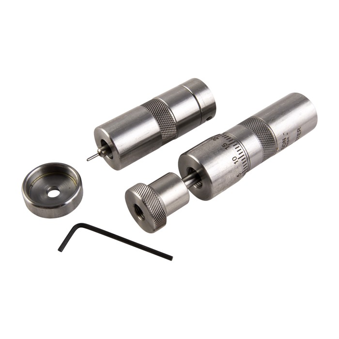 L.E. Wilsonin Bushing Neck Die Kit sisältää bushing-tyylisen kaulan uudelleenkäyttödian ja Wilsonin tarkkuusruostumattomasta teräksestä valmistetun istutusdian. Wilsonin ruostumattomasta teräksestä valmistettu istutusdia on varustettu mikrometrimittaisella yläosalla, jonka avulla voit tehdä hienosäätöjä istutussyvyydessä tarkasti .001 tuuman välein.