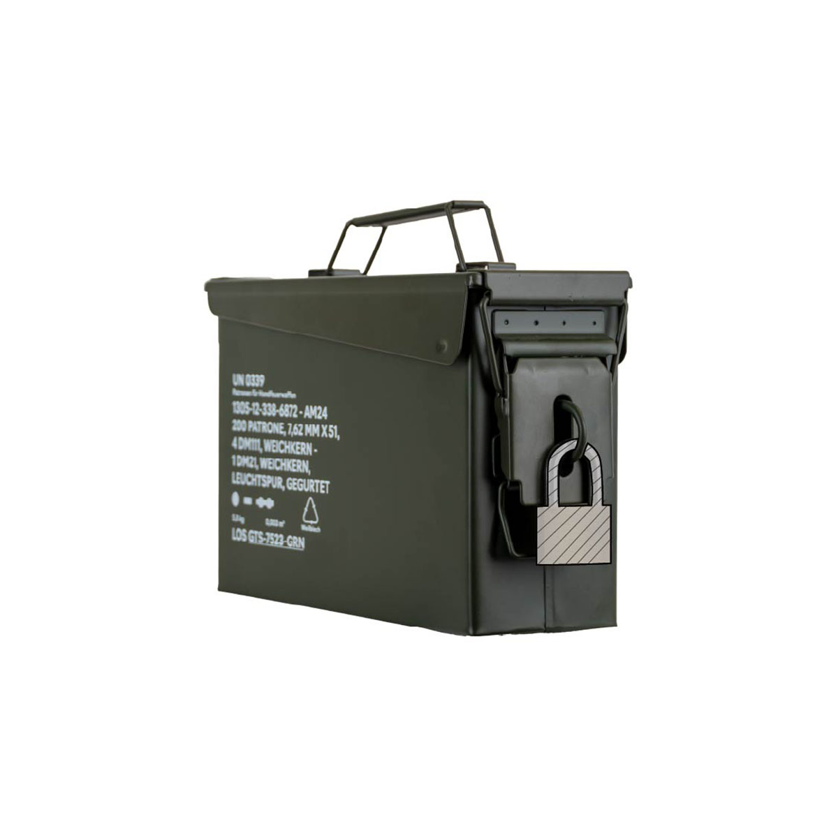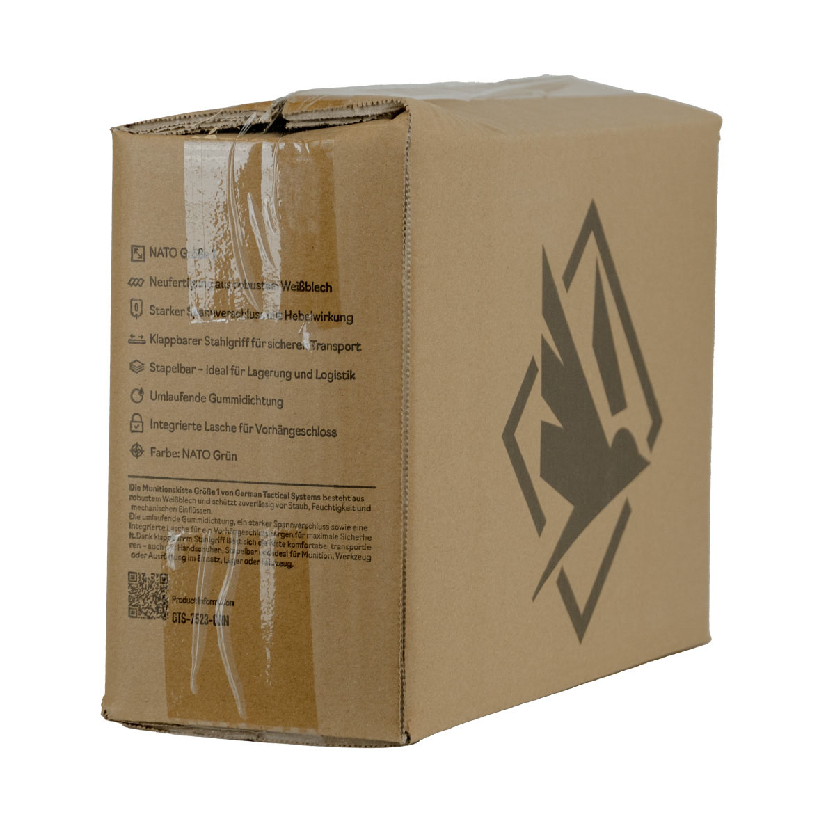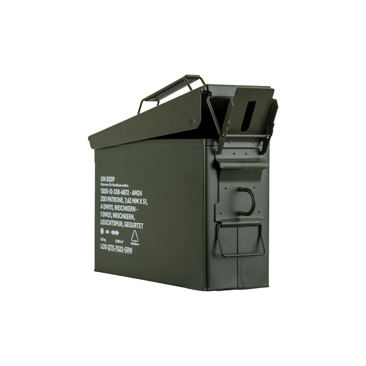 0792649433393 The German Tactical Systems BW Ammo Can (NATO Size 1 – 7.62 mm / .30 Cal) is built from rugged tinplate steel, providing dependable protection against dust, moisture, and impacts. Designed for demanding use in the field, during transport, or in storage, it keeps your ammunition and gear secure in any environment. A continuous rubber gasket ensures a tight seal, while the heavy-duty lever-lock latch keeps the lid firmly closed. For extra security, the integrated padlock tab allows you to lock the contents. The foldable steel carry handle makes transport comfortable, even with gloves, and the stackable design is ideal for organized storage and logistics. Key Features: NATO Size 1 (7.62 mm / .30 Cal) – new production from robust tinplate steel Strong lever-lock latch for secure closure Continuous rubber gasket for dust and moisture protection Foldable steel handle for safe, comfortable carrying Integrated padlock tab for added security (lock not included) Stackable design – ideal for storage and transport Color: NATO Green Perfect for storing ammunition, tools, or mission-critical equipment, the GTS BW Ammo Can delivers military-grade reliability for professionals and enthusiasts alike. Pair it with the GTS Gear Dehumidifier to keep contents dry and corrosion-free for long-term storage.Toimitusaika noin 5-7 päivää.