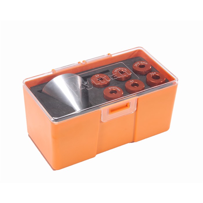 011516724328 Lyman Brass Smith Pro Powder Funnel on suunniteltu vakaville uudelleenlataajille, jotka haluavat parantaa uudelleenlatausvarusteidensa laatua ja toiminnallisuutta verrattuna yleisiin, kaikille sopiviin muovisiin jauhekuppiin, joita markkinoilla on yleisesti. Lyman Brass Smith Pro Powder Funnel on valmistettu valualumiinirungosta, joka yhdistyy tarkasti koneistettuihin lisäosiin. Suunnittelu on täysin staattinen, mikä tarkoittaa, että uudelleenlataajilla ei ole irtonaisia jauhehiukkasia tarttumassa suppilon seinämiin. Erityisesti koneistetut lisäosat ovat myös kaliiberikohtaisia, mikä mahdollistaa tietyntyyppisten patruunakuorien tarkemman lataamisen. Lisäosat on suunniteltu kaliibereille, jotka vaihtelevat .22:sta .338:aan. Pehmustettu säilytyskotelo mukana. Mukana oleva kahva mahdollistaa helpon käytön. Lyman Brass Smith Pro Powder Funnel on helppo käyttää ja voidaan nopeasti muokata kaliiberikohtaisilla lisäosilla hetkessä.Jälkitilaus, toimitusaika n. 4-12 viikkoa USA:n varastosta.