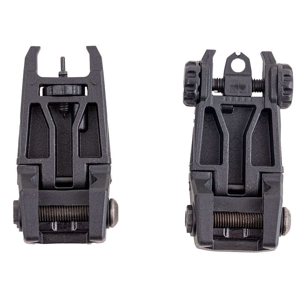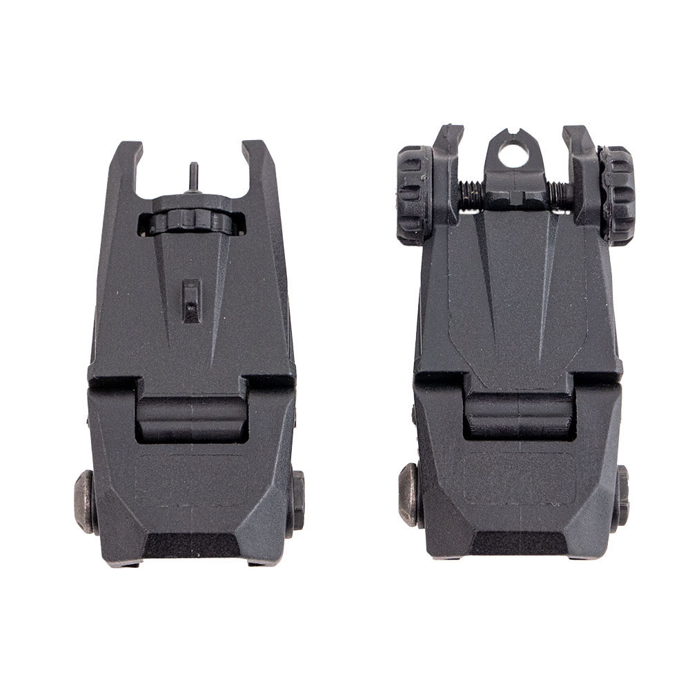 The set is lightweight and durable, and the flip-up design is enhanced with precision machined metal parts and heavy-duty springs. The set includes both front and rear sights.