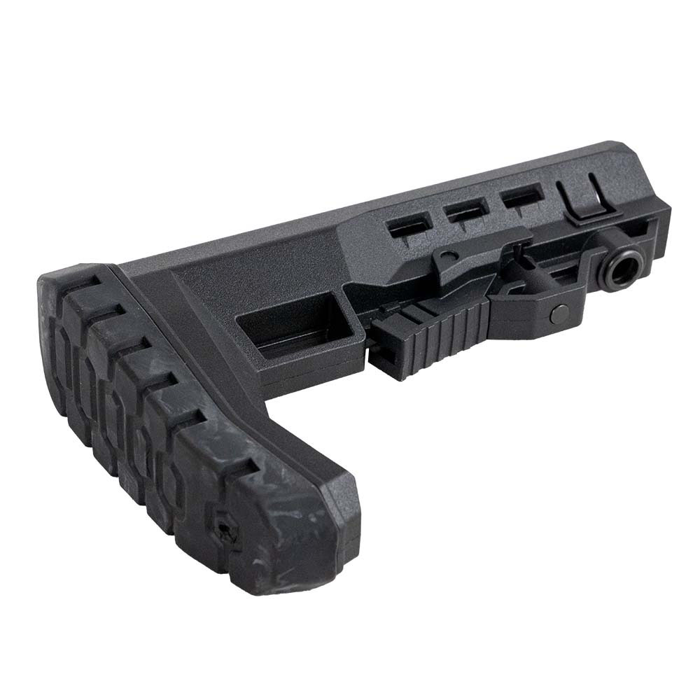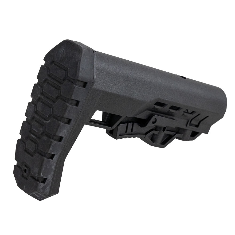 Optimized for use with plate carriers, the Breacher AR-15 Mil-Spec Stock prioritizes your shooting experience, even when wearing body armor. The angled rubber butt-pad and dual-side release latches are specifically designed to facilitate efficient shoulder transitions and provide a secure and stable shooting platform.