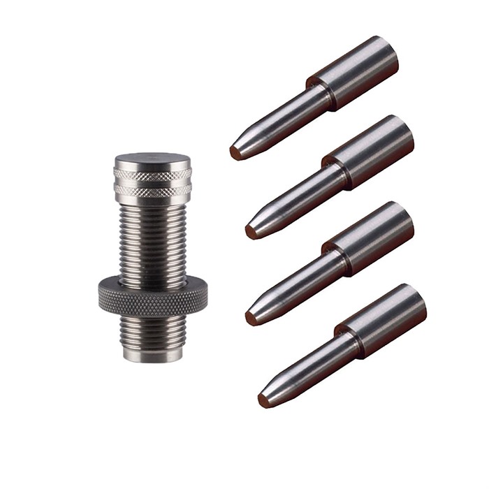 Sinclairin karbidilaajennusmandrellisarja tarjoaa erinomaisen valikoiman työkaluja kaulan laajentamiseen. Nämä mandrellit ovat kooltaan 0.001” pienempiä kuin luodin halkaisija ja ne on tarkkuushiottu kiinteästä karbidimateriaalista parhaan mahdollisen toleranssin saavuttamiseksi. Alun perin suunniteltu kaulan laajentamiseen ennen kaulan kääntämistä, nämä mandrellit ovat myös erittäin suosittuja kaulajännityksen asettamisessa ja keskeisyyden ylläpitämisessä. Karbidimandrellit tarjoavat enemmän liukastavuutta ja käyttöikää ruostumattomaan teräkseen verrattuna, ja ne kestävät gallingia.