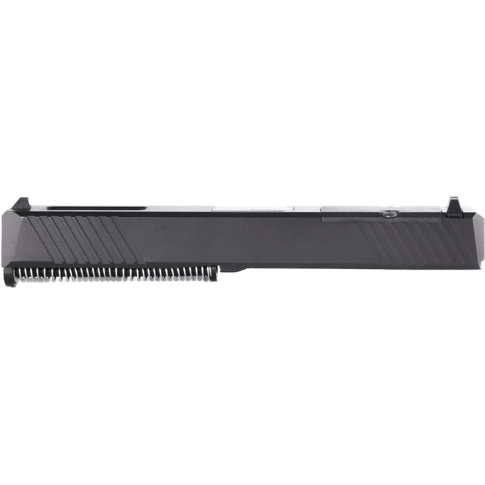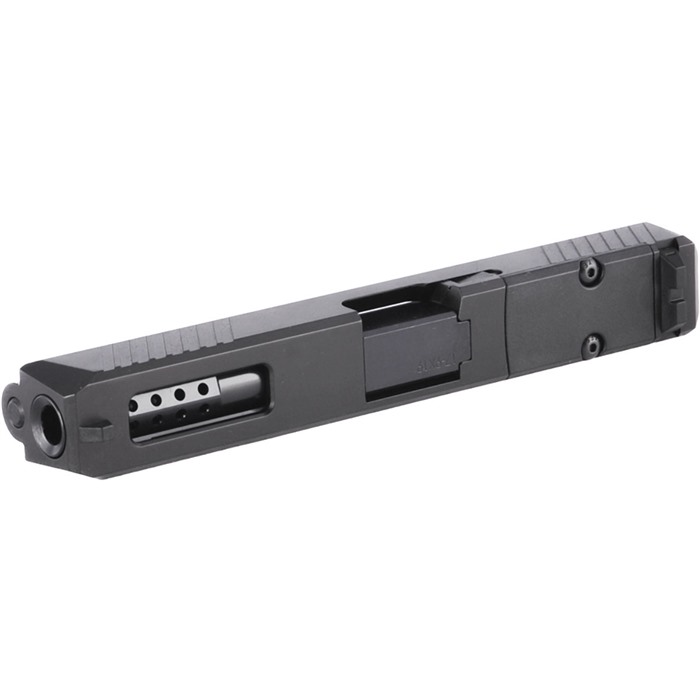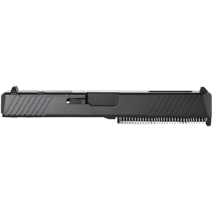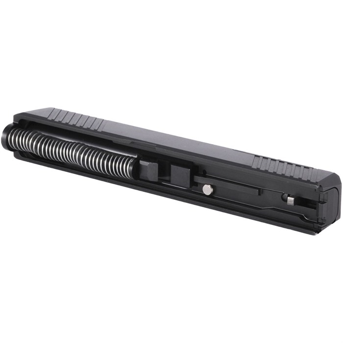 Complete Upper Assembly for Upgrading Your Factory G17 or a Custom Build Top off your next custom pistol build or upgrade with our Complete RMR Slide Assembly for Glock® 17 Gen3, available in three configurations. You can get your slide with a premium match-quality barrel, a ½"-28 tpi threaded barrel to accept a sound suppressor, or with a ported barrel that vents through a window in the top of the slide to counteract muzzle rise and help you keep the sights on the target for subsequent shots. This eliminates the need to install a bulky compensator on the muzzle, which means your new comped pistol will still fit standard holsters for the Glock® 17. These slides come fully assembled with the barrel and all the internal small parts installed, making this RMR Slide the ideal upgrade for your factory Glock® 17 Gen3 pistol or the perfect "top half" for a brand-new custom gun built on a compatible frame from another manufacturer. It features a pre-cut slot for easy, secure, low-profile mounting of a reflex red dot sight that fits the Trijicon RMR footprint. If you're not mounting a red dot at the moment, we've included a lightweight reinforced polymer cover plate to neatly fill the slot. Our RMR Slide comes with standard-height front and rear sights, which can serve as your primaries or a backup "iron" sights when paired with a red dot sight. Comes COMPLETE with barrel, front & rear sights, and small parts installed Fits Gen3 Glock® 17 pistols & clones Built-in mounting slot for reflex sights with the Trijicon RMR footprint Optic slot cover plate & recoil spring assembly also included Slide machined from 416 stainless steel billet, with a Black Nitride finish Choice of Solid top slide with standard barrel or ½"-28 tpi threaded barrel, OR distinctive top Window slide with ported/compensated barrel Each RMR Slide for Glock® starts life as a billet of 416 stainless steel that is machined to Glock® factory specifications inside, with a tough, extremely wear-resistant black Nitride finish. This slide fits standard Glock® factory G17 frames and compatible aftermarket frames. The match-quality barrel is machined from premium 416R stainless steel alloy. The muzzle of the threaded barrel has standard ½"-28 tpi threads. The ported barrel has eight ports angled to provide just the right counterforce to muzzle rise. On the sides at the rear, you'll find distinctive wide, shallow cocking serrations that give excellent "purchase" to rack the slide, plus a mirrored set of serrations up front that aid in manipulating the slide to press-check the chamber. Both sets of serrations make it easy to manipulate your pistol's slide from any angle and in any position. Hey, we have to admit these serrations just look very cool, too! Whether you're assembling a custom pistol to meet specific needs, or you're upgrading a factory Glock 17 for enhanced performance and versatility, a Brownells complete slide assembly is helps you complete your project quickly and easily! Brownells Gun Tech™ Note: Channel liner required for these slides. Channel liner is a press fit and requires a tool to install. We recommend #777-100-017.