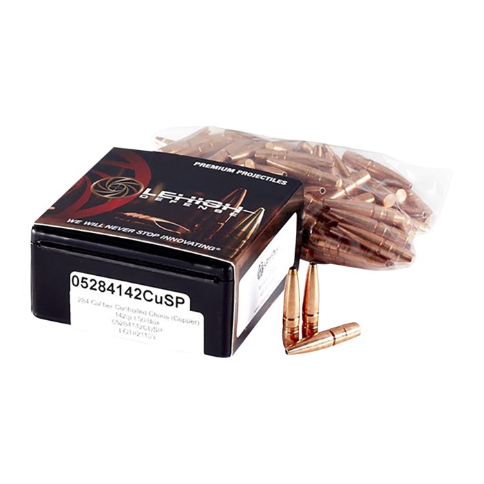 CONTROLLED CHAOS 284 CALIBER (0.284") -kuulat, 284 CALIBER (0.284") 142GR KUPARIKUULAT, 50 kpl/laatikkossa, tarjoavat ainutlaatuisen yhdistelmän nopeaa laajenemista ja syvää läpäisyä.