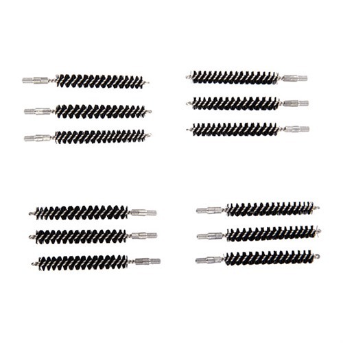 Puhdistusharjat sisältävät koneistetut alumiinikomponentit, jotka eivät reagoi ammoniakkipohjaisten liuottimien kanssa kuten messinkiosat joskus tekevät. Ne eivät tuota sinivihreitä tahroja, joita voidaan väärin tulkita "vääriä positiivisia" merkkeinä kuparisaastumisesta, joten tiedät, kun piippusi on todella kuparivapaa. Kuparin poistamiseen tarkoitetut osat ovat kovuudeltaan samanlaisia kuin messinki, eivätkä naarmuta piippua tai vahingoita suuta, ja ne kestävät kovaa käyttöä. Nailoniharjat, jotka on kierretty alumiinisen ytimen ympäri ja joissa on miehen kierretty alumiiniliitin, ovat täysin messinkivapaita, jotta vältetään vääriä positiivisia sinivihreitä merkkejä kuparisaastumisesta, joita voi esiintyä käytettäessä ammoniakkipohjaisia liuottimia messinkiytimellä varustetuissa harjassa. Tiheät nailoniharjat tarjoavat runsaasti puhdistusvoimaa, mutta ovat äärimmäisen hellävaraisia riflingille. .17 ja .20 kaliiperin harjat, joissa on 5-40 kierteet, laajentavat Copper Eliminator -järjestelmän etuja olemassa olevaan pienikaliiperiseen varteen. .22 kaliiperin ja suuremmat harjat ovat 8-32 kierteillä käytettäväksi Dewey Copper Eliminator -varsien kanssa.Jälkitilaus, toimitusaika n. 4-12 viikkoa USA:n varastosta.
