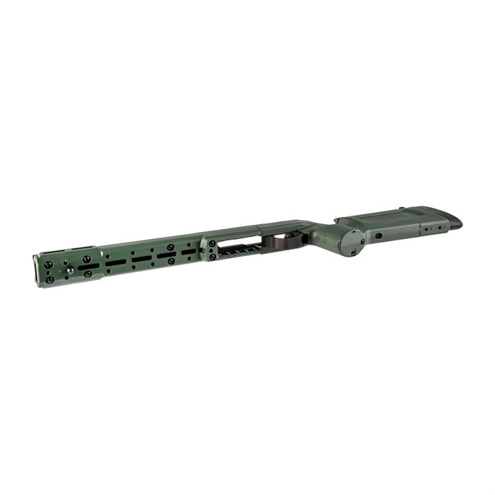 Bravo Chassis Rimfire: The CZ-457 variant of the Bravo Chassis provides you with the essential chassis benefits combined with conventional target/varmint ergonomics all at a modest price The Bravo is one of the most comfortable stocks available but that's just the beginning. The price will make you and your wallet overjoyed. The precisely machined bedding area will put your action in its happy place nearly like it was custom bedded in there. The full length stiff aluminum backbone will not allow the forend to flex on you but does allow design modularity with loads of accessories and even other KRG chassis. The ergonomic adjustments are just what you need to fit your frame so you can pull off the difficult shots. It's light. It's comfortable. It's modular. It's good looking. And it's practically free. You will love it. Utilizes factory rimfire mags (Not included).