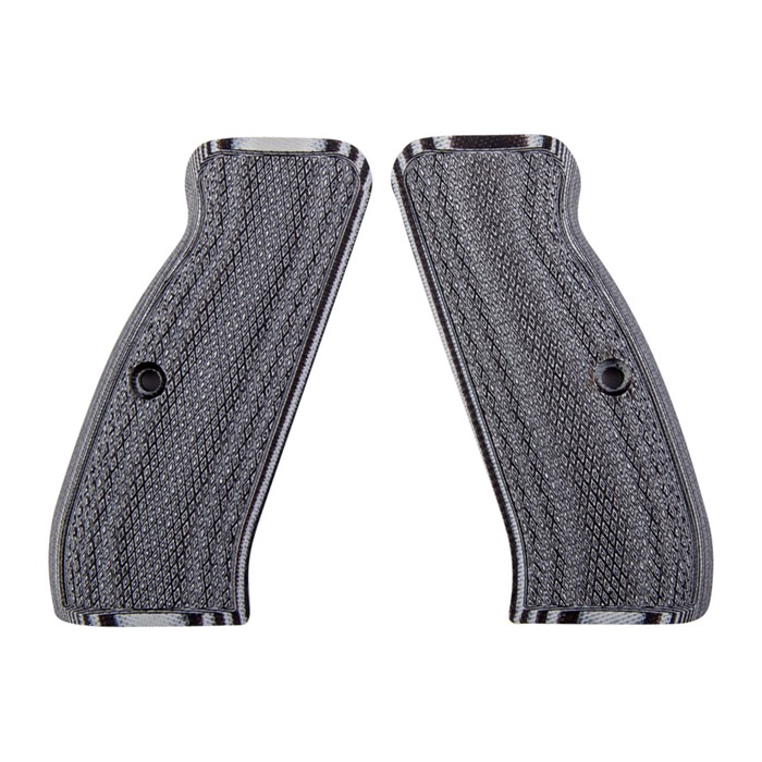 The use of Pachmayr G-10 Tactical Pistol Grips for CZ 75 ensures that those who own a CZ handgun can incorporate the technological benefits of G-10 material into their handguns, beating out owners of wood-stocked or polymer-stocked guns. The Pachmayr G-10 Tactical Pistol Grips for CZ 75 incorporate novel G-10 laminate into their construction, which is constructed from a blend of fiberglass and epoxy resin. These materials work together to improve grip quality. CZ grips feature blend of gray and black coloring Checkered grips work to promote grip Gun cleaners and weather will not damage G-10 material When shooters grab a pair of Pachmayr G-10 Tactical Pistol Grips for CZ 75, they instantly upgrade their guns with improved handling and service life.