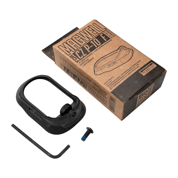 The Strike Industries Magwell for CZ P-10 F was designed to provide easier reloading of the magazine while adding SI styling. With the added front lip of the magwell, this SI magwell gives improved grip support. This magwell is made of high-strength impact resistant custom blended SI Polymer Extreme material. Keeping to the slender factory design of the pistol grip, the benefit of adding a funnel-like magwell to help prevent the dreaded reload bobble outweighs the added material of this SI Magwell. Add consistency and cut fractions of seconds off your reloads now with the Strike Industries Magwell for CZ P-10 F while comfortably carrying your pistol on your hip or in your waistband. Compatible with most aftermarket magazine base plates. Product Features: Flared magwell for easier magazine Insertion Improved grip support Ease of installation Lightweight High-strength impact resistant custom blended SI Polymer Extreme material COMPATIBILITY: CZ P-10 F CZ OEM factory magazine base pad Backstraps: small and medium (excluding large) SI Extended Magazine Plate for CZ P-10 / P-09 NOT COMPATIBLE: CZ P-10 F large backstrap
