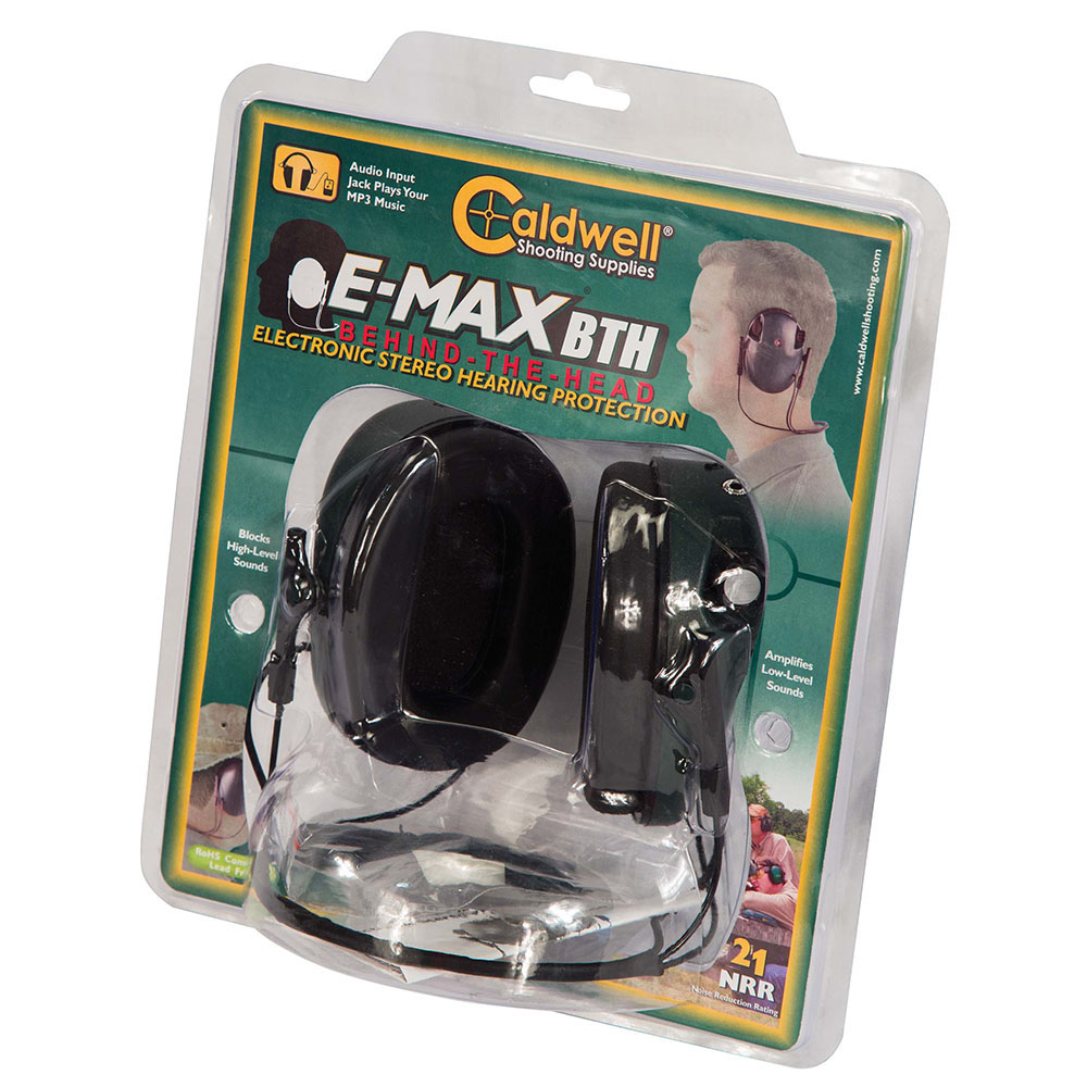 Caldwellin E-Max® takaraudalla oleva kuulosuojaus yhdistää erinomaisen elektroniikan matalan profiilin korvakupeilla, jotka ovat ihanteellisia haulikkoampujille ja toimintalajeille. E-Max® vahvistaa ääniä jopa 20 dB, ja äänenvoimakkuutta säädetään oikean korvakuoren säätimellä. Tämä on hyödyllistä normaalissa viestinnässä, ampumaradan käskyissä ja ympäristön äänissä.