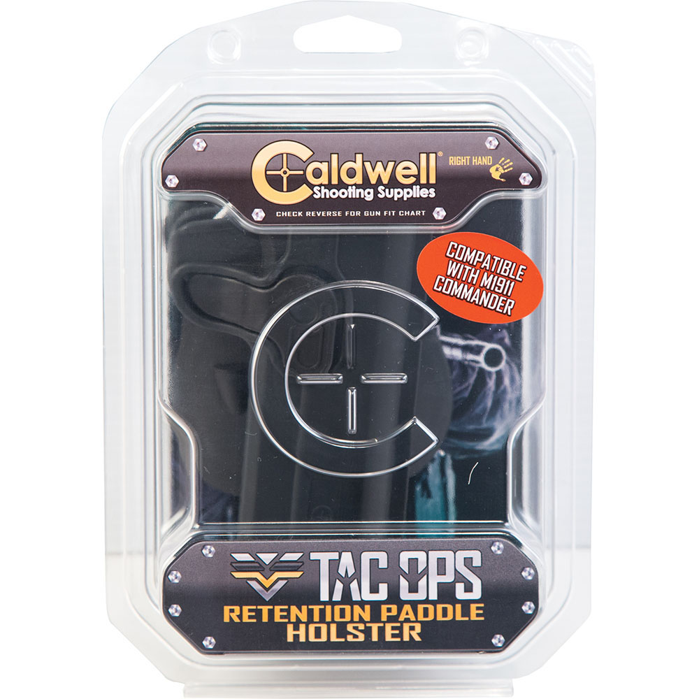 Tämä Caldwell Tac Ops -holsterimallisto, patruunapussit ja palvelusvyöt tarjoavat kaiken, mitä käsikäsiaseen omistaja tarvitsee! Tac Ops -retention-holsterit on valmistettu vahvistetusta polymerista ja ne on suunniteltu istumaan monille eri käsikäsiaseen malleille. Holstereissa on myös trigger guard retention lock -lukitus.