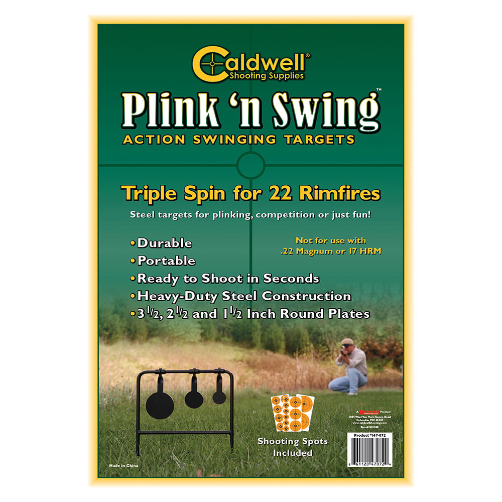 Muista, että turvallisuus on ensisijainen asia ampumaharrastuksessa. Noudattamalla näitä ohjeita voit nauttia Caldwell Swinging Target Triple Spin .22 Rimfire Swinging Targetin käytöstä turvallisesti.