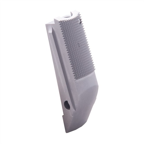 Eliminates the sharp profile at the rear of the grip that can “print” when carrying a concealed 1911 Auto. Reduces bulk without reducing magazine capacity or performance. Removes nearly ½" of material from the butt while maintaining correct grip position. Will require modification of grip panels. Choose from Smooth, Checkered (25 lpi), Snakeskin, Chainlink, or Chainlink II patterns. Includes mainspring, cap, and retaining pin. All internal parts are officer's model size.
