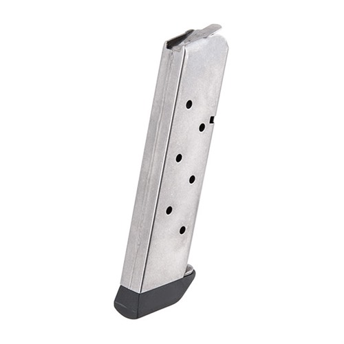 Designed by champion shooter Chip McCormick with his unique, flat follower to give more capacity. Features a fixed base that’s drilled for easy pad installation. All springs are Wolff. Factory replacement; made to tolerances that are 50% tighter than military spec. Non-numbered view holes. Stainless steel construction, and available with or without base pad.