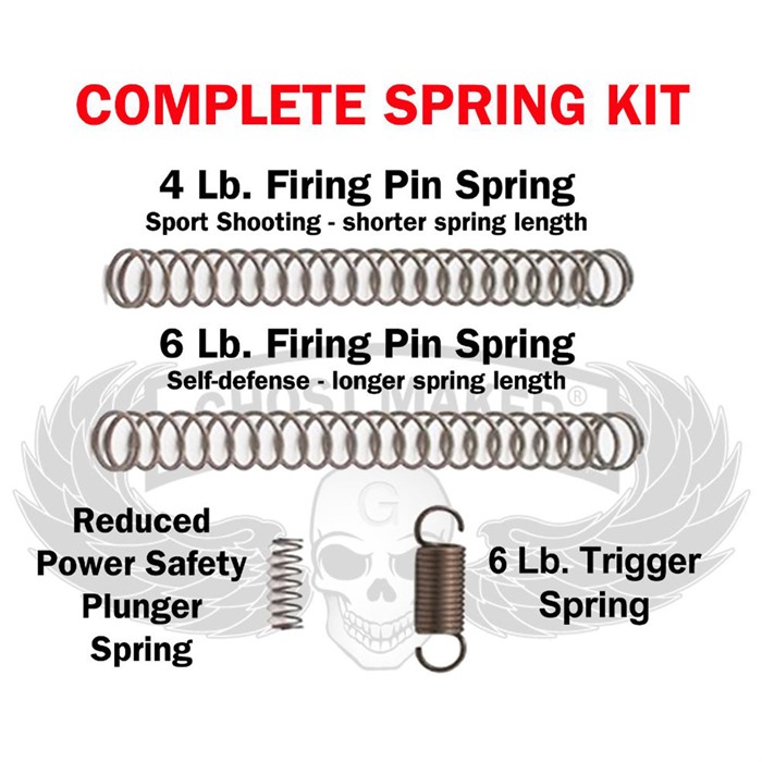 813978020075 Tarjoaa kaikki jouset, joita tarvitset mukauttaaksesi liipaisimen vetovoimat joko urheiluammuntaa tai itsensäsuojaa varten. Ominaisuudet: 4 Lb laukaisinjousi urheiluammuntaan, 6 Lb laukaisinjousi itsensäsuojaan, vähennetyn tehon turvapuolan jousi, 6 Lb liipaisinjousi. Valmistettu parhaasta pianon teräksestä ja lämpökäsitelty mahdollisimman pitkän käyttöiän takaamiseksi.Toimitusaika noin 2-4 viikkoa.