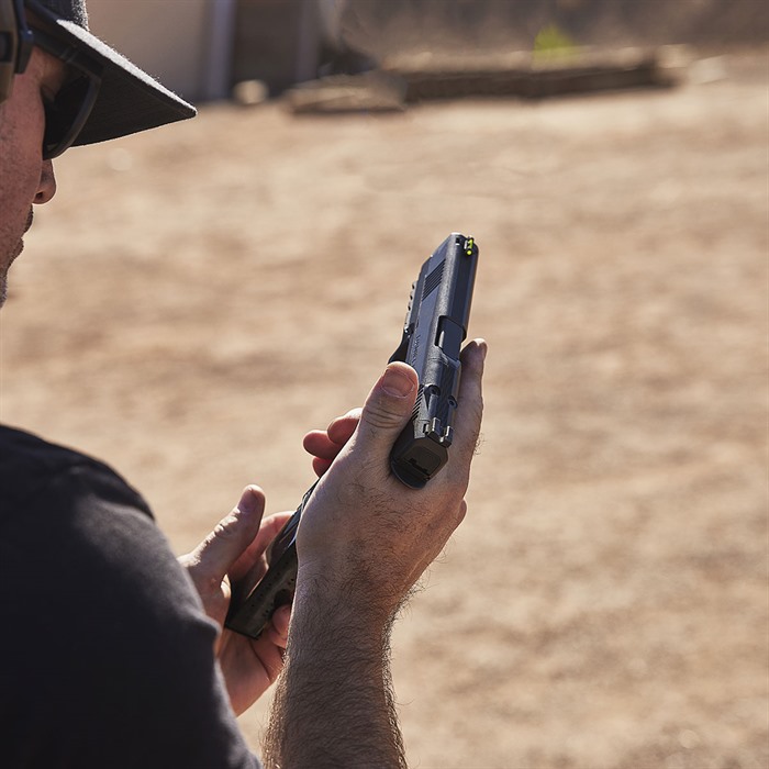 Yhdistelemätön liukusäätö: Yhdistelemätön slide stop ja käännettävä mag-release -painike tarjoavat erinomaisen ergonomian.