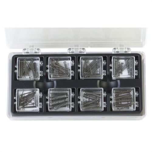 Never search for the right detent ball spring again. Save your valuable time, and money, with this Kit of correctly-sized "in-the-hole" coil springs - a perfect match for each and every size contained in our Detent Ball Kit. You get 20 each of eight springs to match the eight most popular sizes of detent balls used in the gunsmithing industry. The springs are made with two "closed" (finished) ends and enough length that one spring can usually be made into two; a double value.